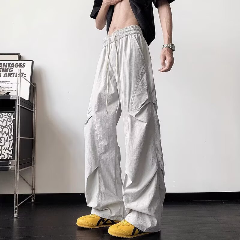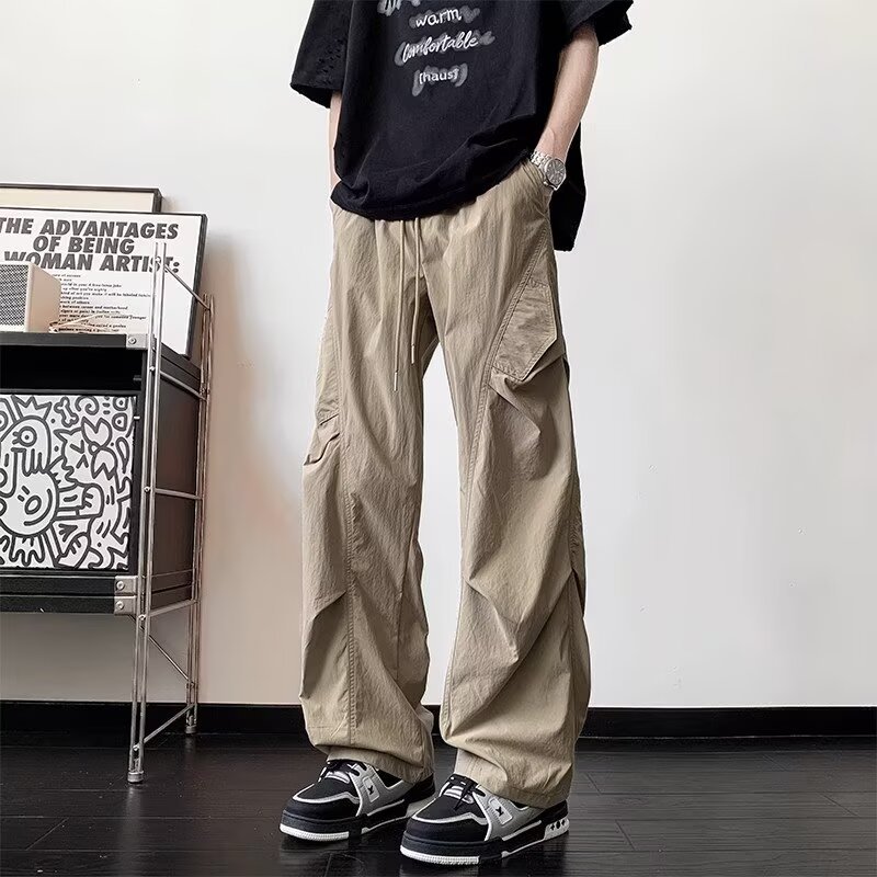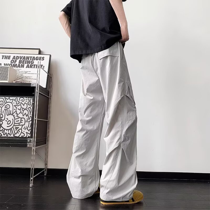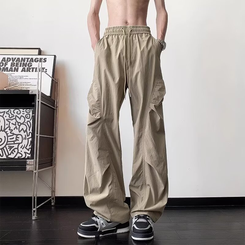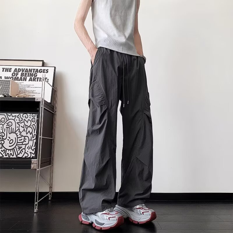 남성용 여름 얇은 속건성 주름 기능성 바지 하이킹 및 등산 낙하산 충전 바지 루즈 스트레이트 바지