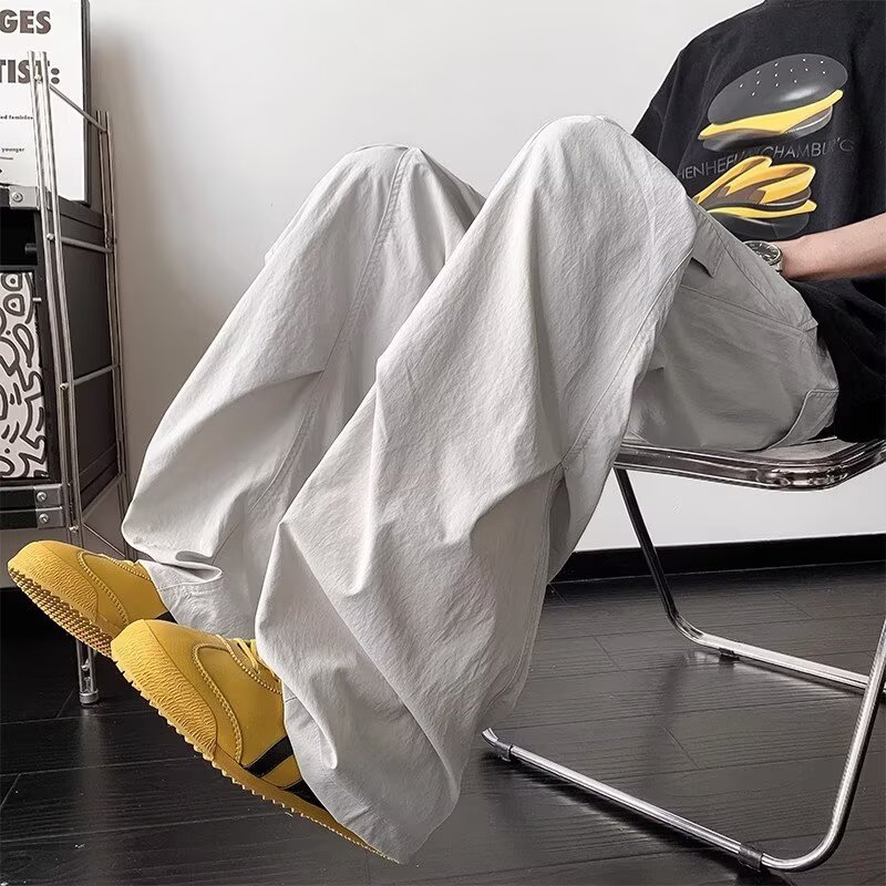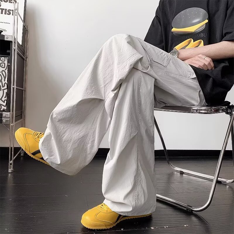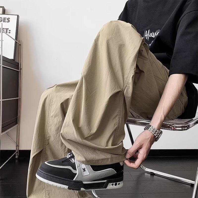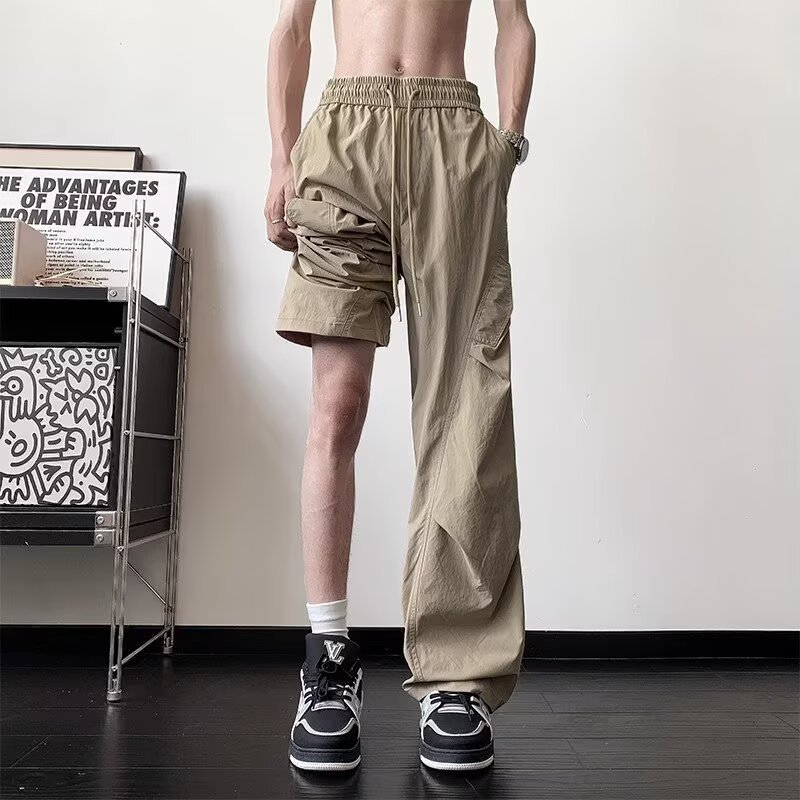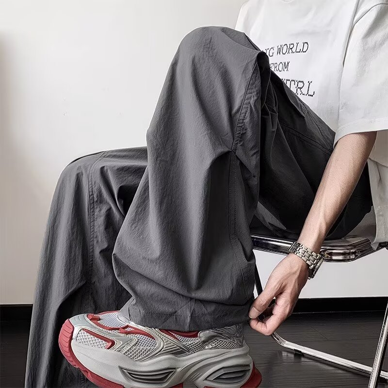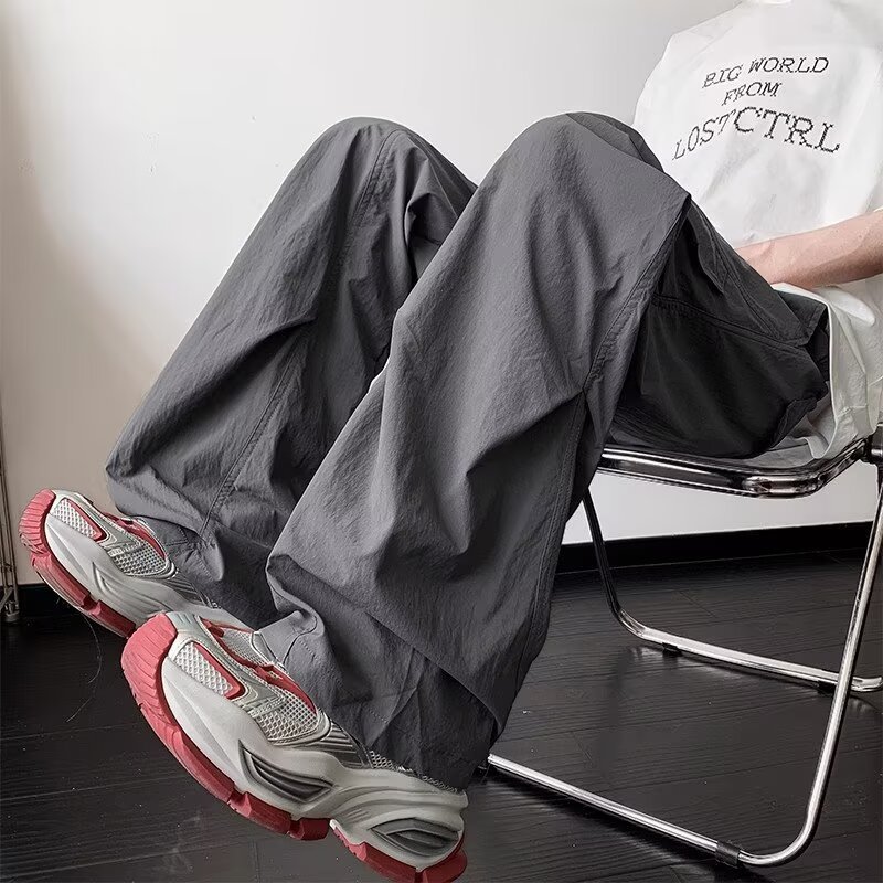 남성용 여름 얇은 속건성 주름 기능성 바지 하이킹 및 등산 낙하산 충전 바지 루즈 스트레이트 바지스토어 가기