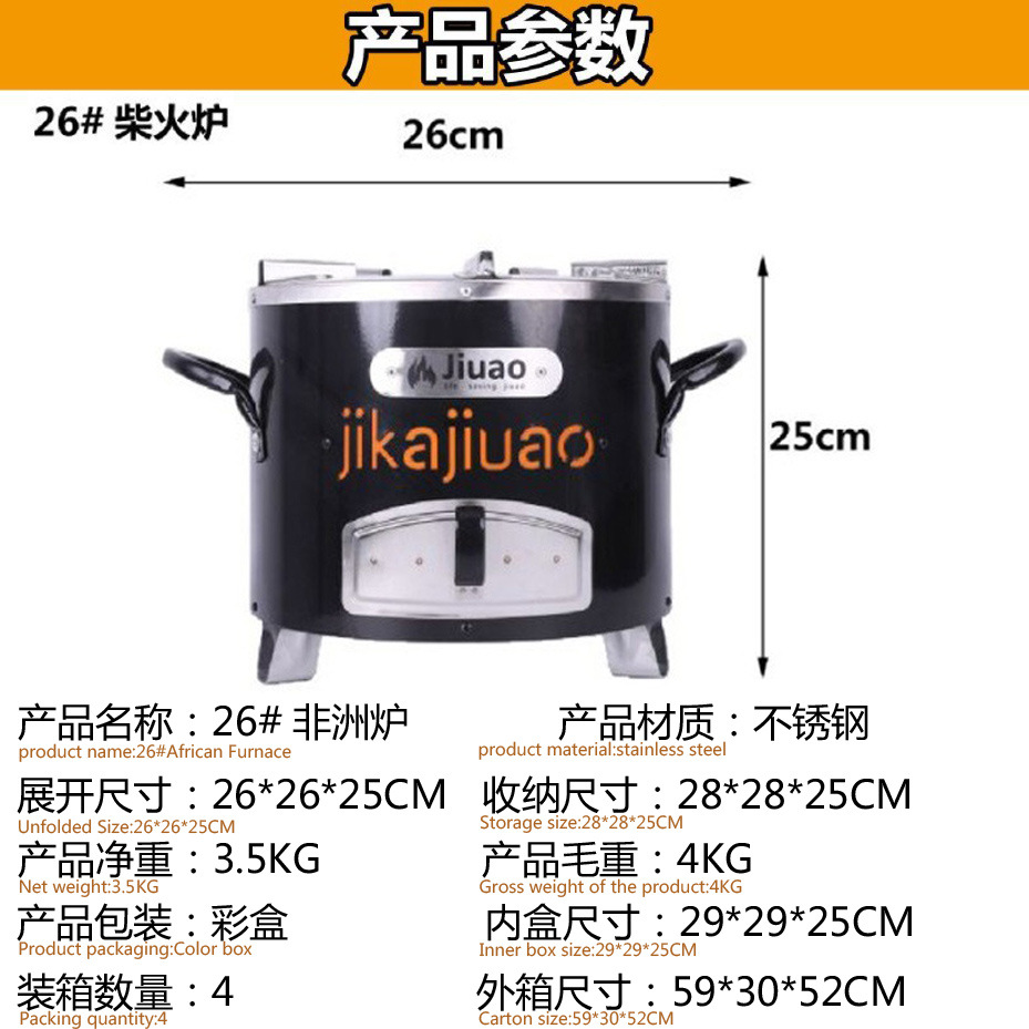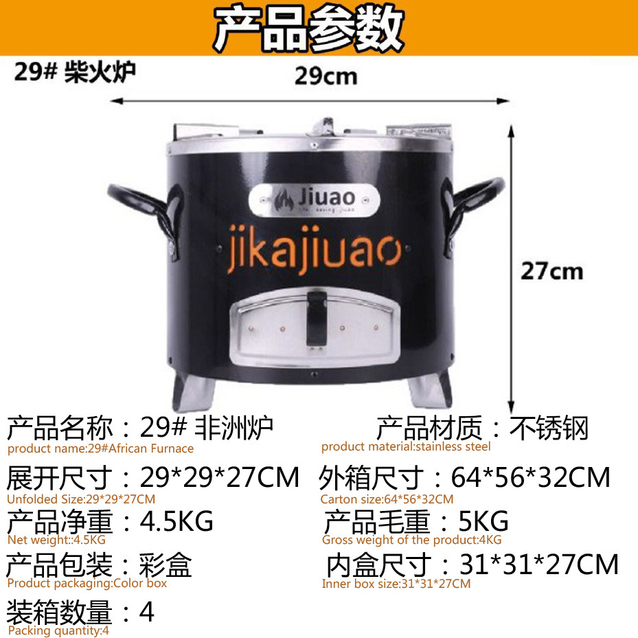 수출 아프리카 스토브 요리 스토브 가정용 탄소 스토브 스테인레스 스틸 장작 스토브 야외 피크닉 스토브 장작 스토브