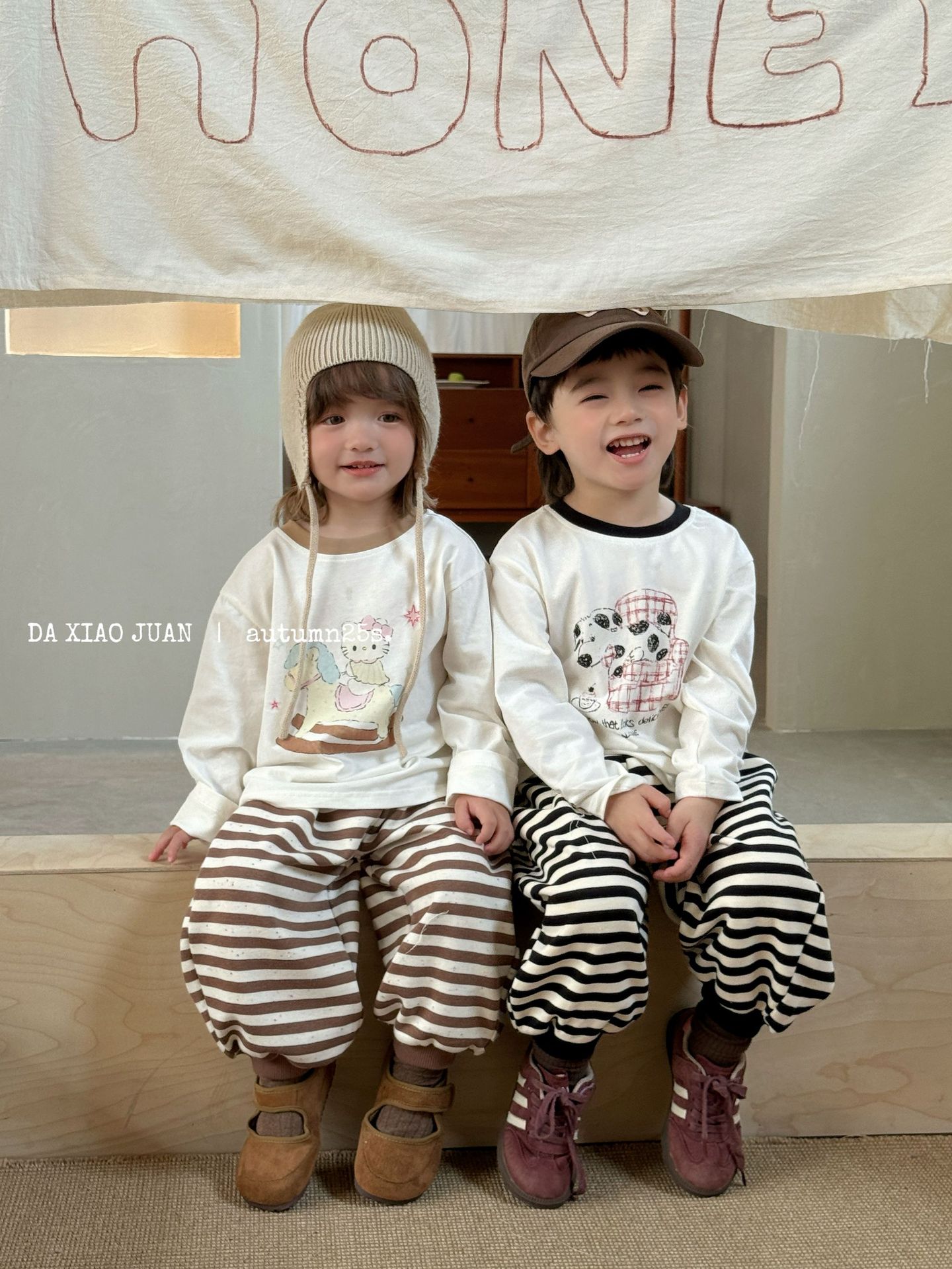대형 및 소형 롤 어린이 프린트 긴팔 티셔츠 2025 봄 신작 소녀 귀여운 프린트 스타일 루즈 탑