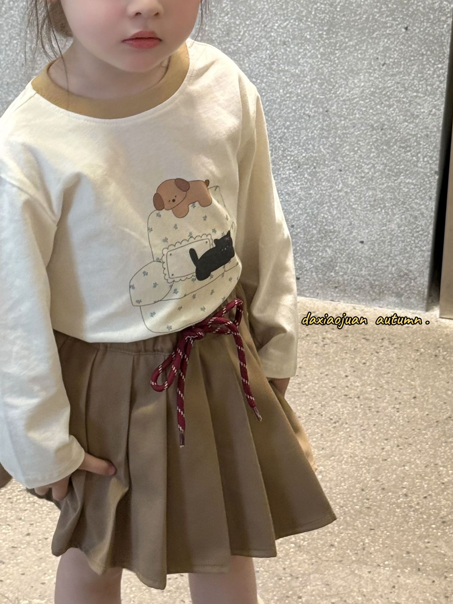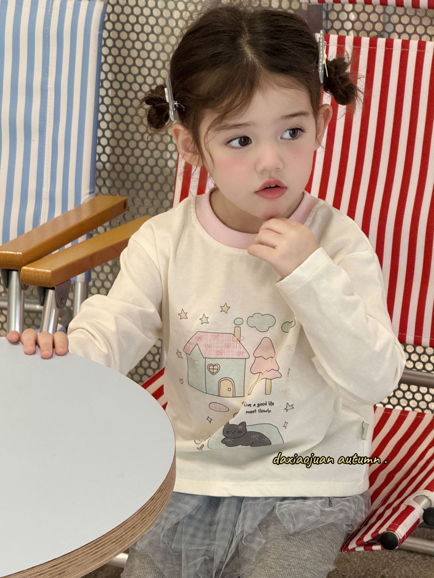 대형 및 소형 롤 어린이 프린트 긴팔 티셔츠 2025 봄 신작 소녀 귀여운 프린트 스타일 루즈 탑스토어 가기