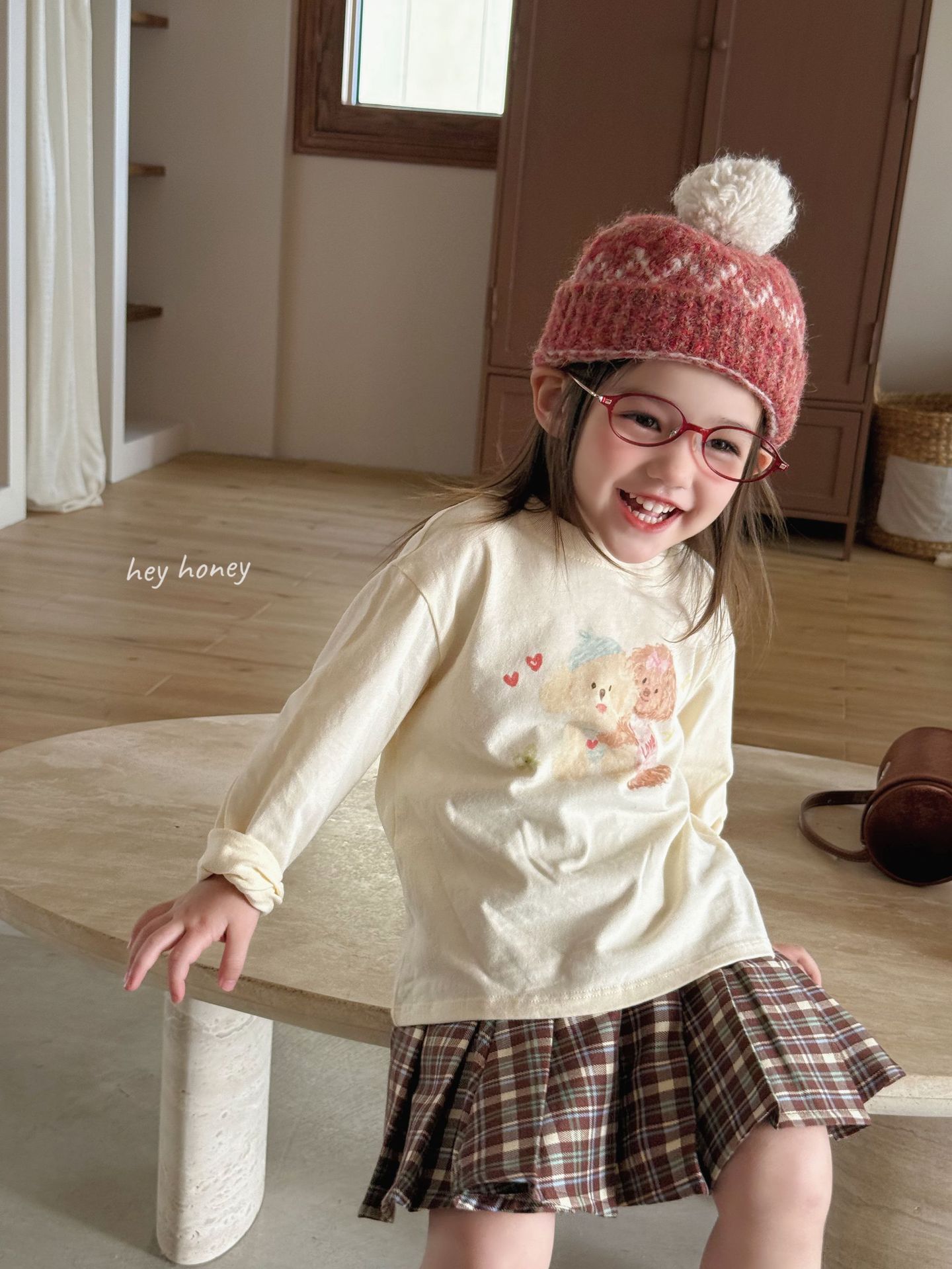 • 핑크 체크 무늬 헬로 키티