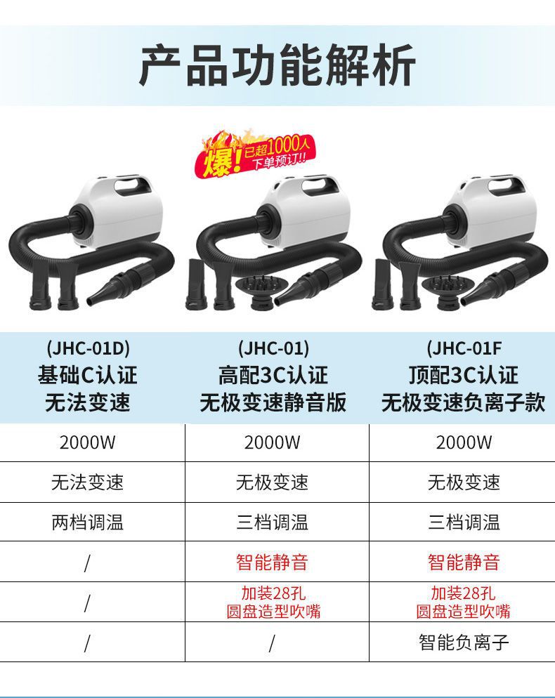 • 수평 상단 버전(음이온, 무단계 속도, 3단 온도 조절)