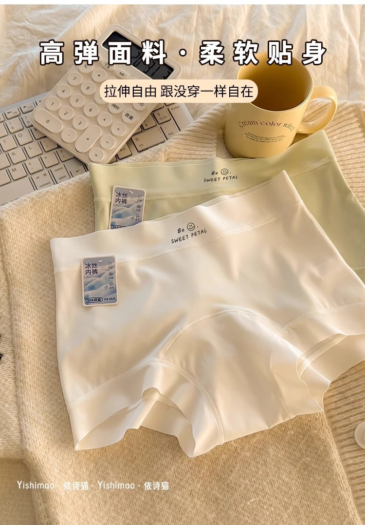 여름 초박형 얼음 실크 여성용 복서 팬티, 무봉제 확장 순면 가랑이 10A 항균 엉덩이 커버 여성용 대형 속옷스토어 가기
