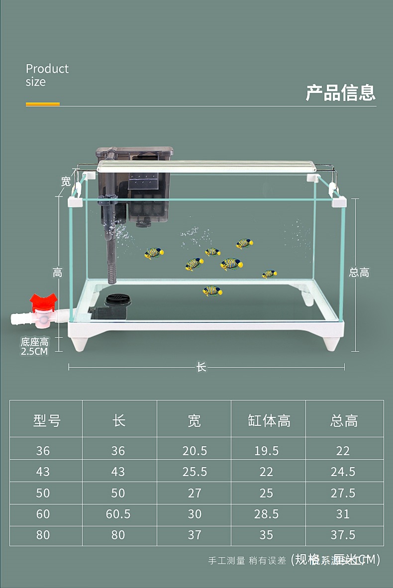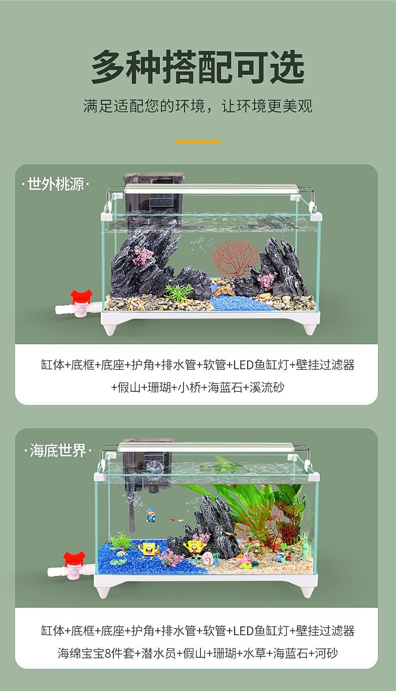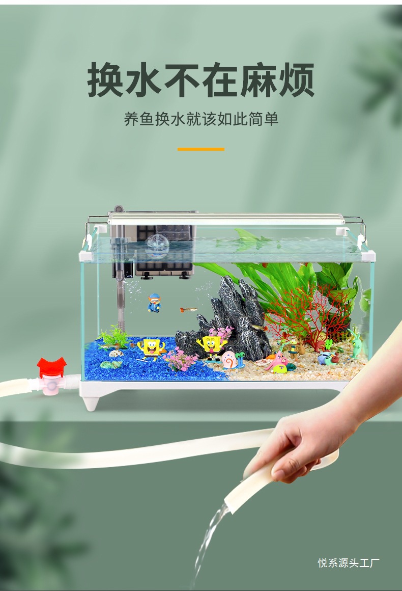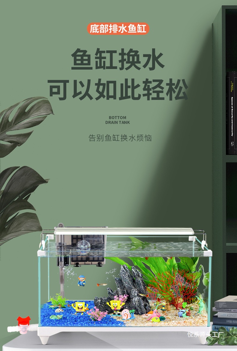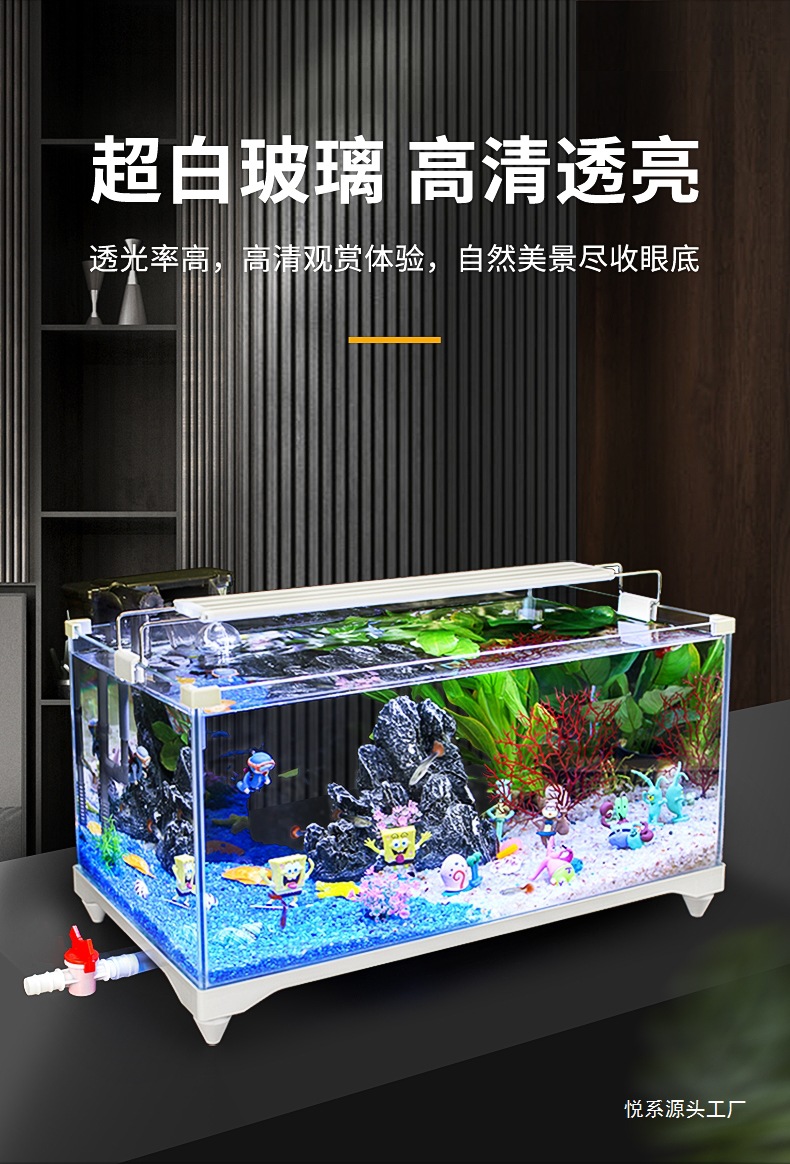 물고기 탱크 새로운 생태 유리 슈퍼 화이트 탱크 홈 거실 사무실 작은 대형 데스크탑 금붕어 바닥 Yue 시리즈스토어 가기