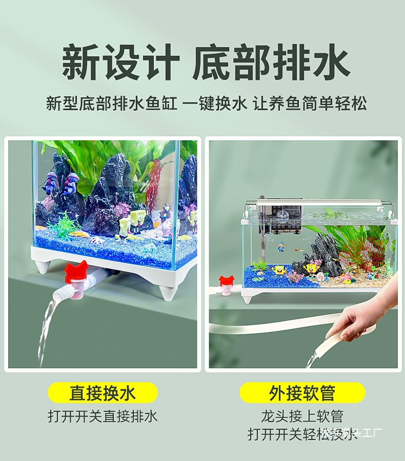 물고기 탱크 새로운 생태 유리 슈퍼 화이트 탱크 홈 거실 사무실 작은 대형 데스크탑 금붕어 바닥 Yue 시리즈