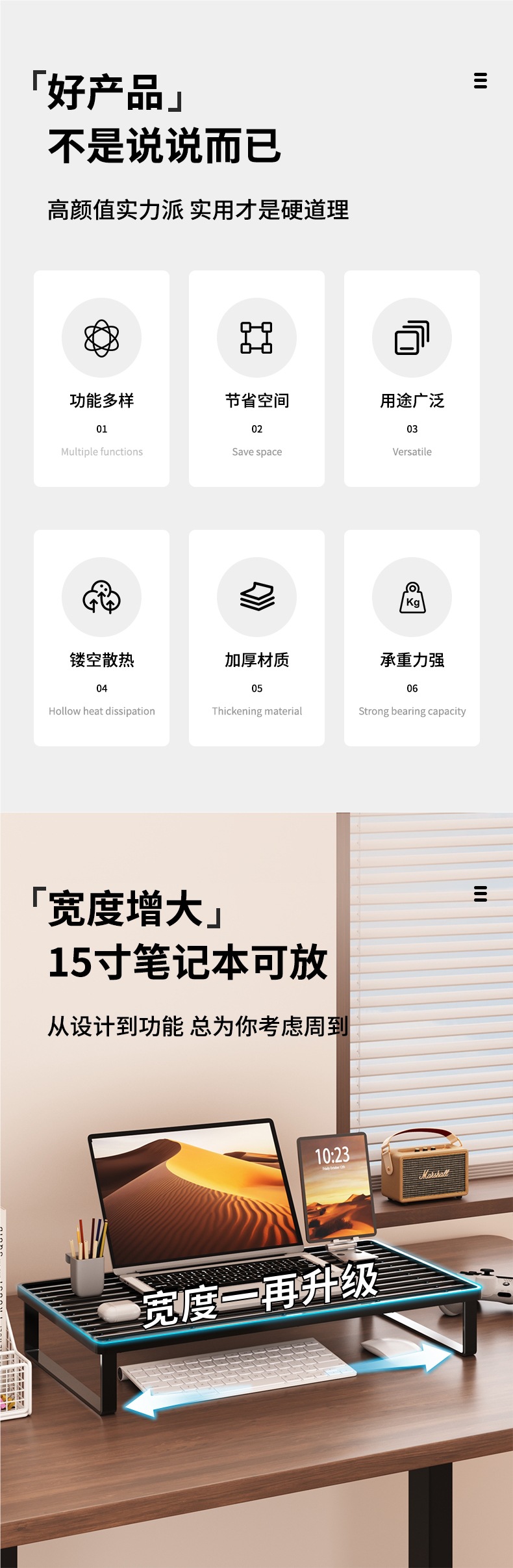 노트북 냉각 스탠드, 컴퓨터 높이 스탠드, 설치가 필요 없는 그릴, 모니터 배치 스탠드, 데스크탑 높이 스탠드스토어 가기