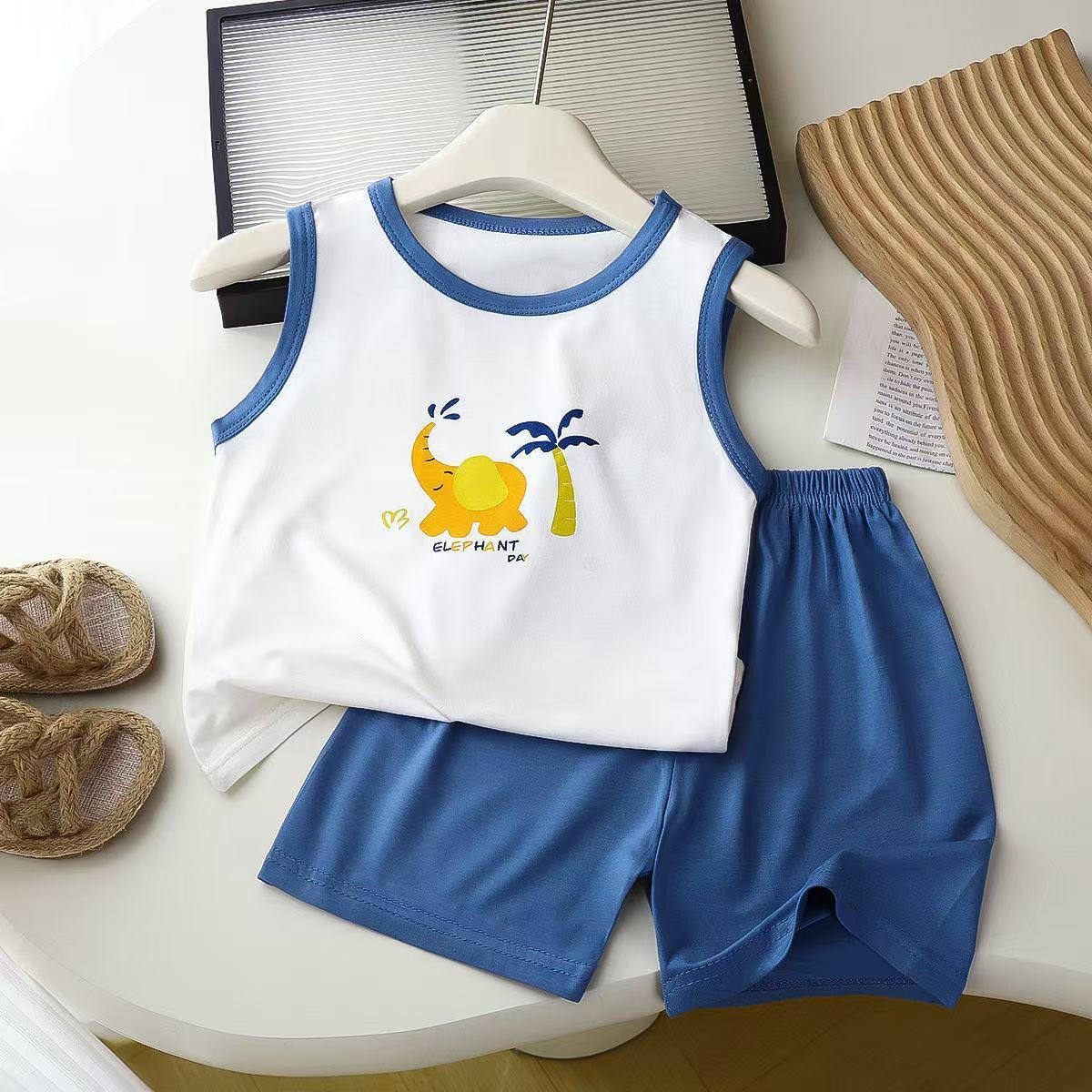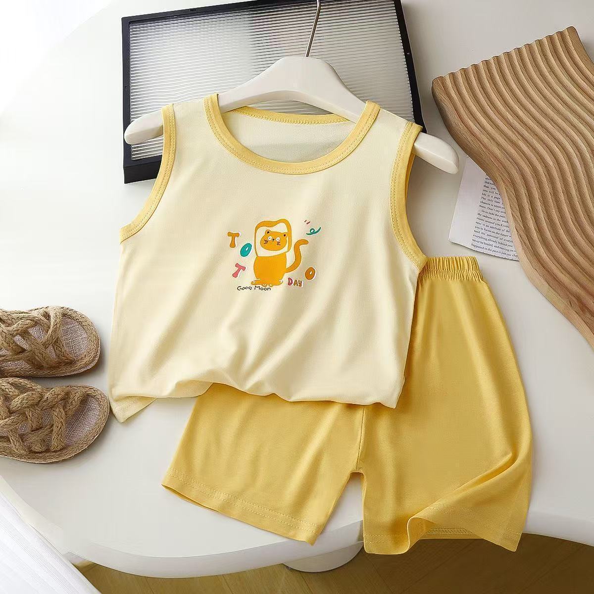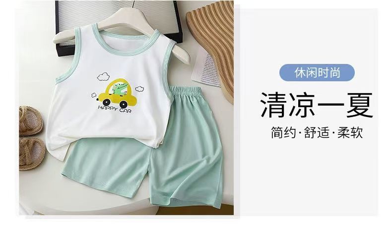 아이스 실크 에어컨 옷, 여름 소년 가정복, 아동 조끼 세트, 큰 어린이 소녀 잠옷, 여름 얇은 스타일스토어 가기