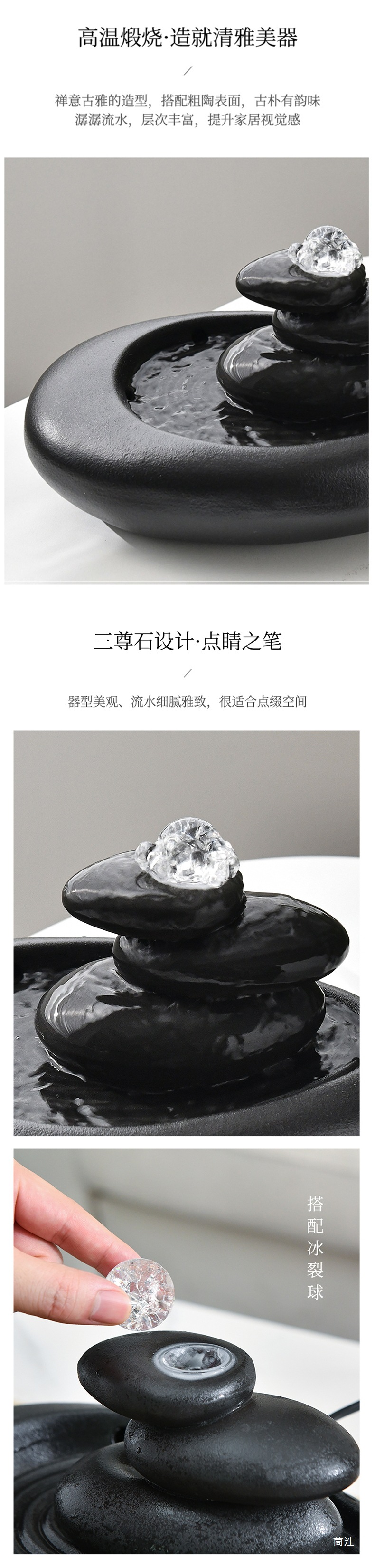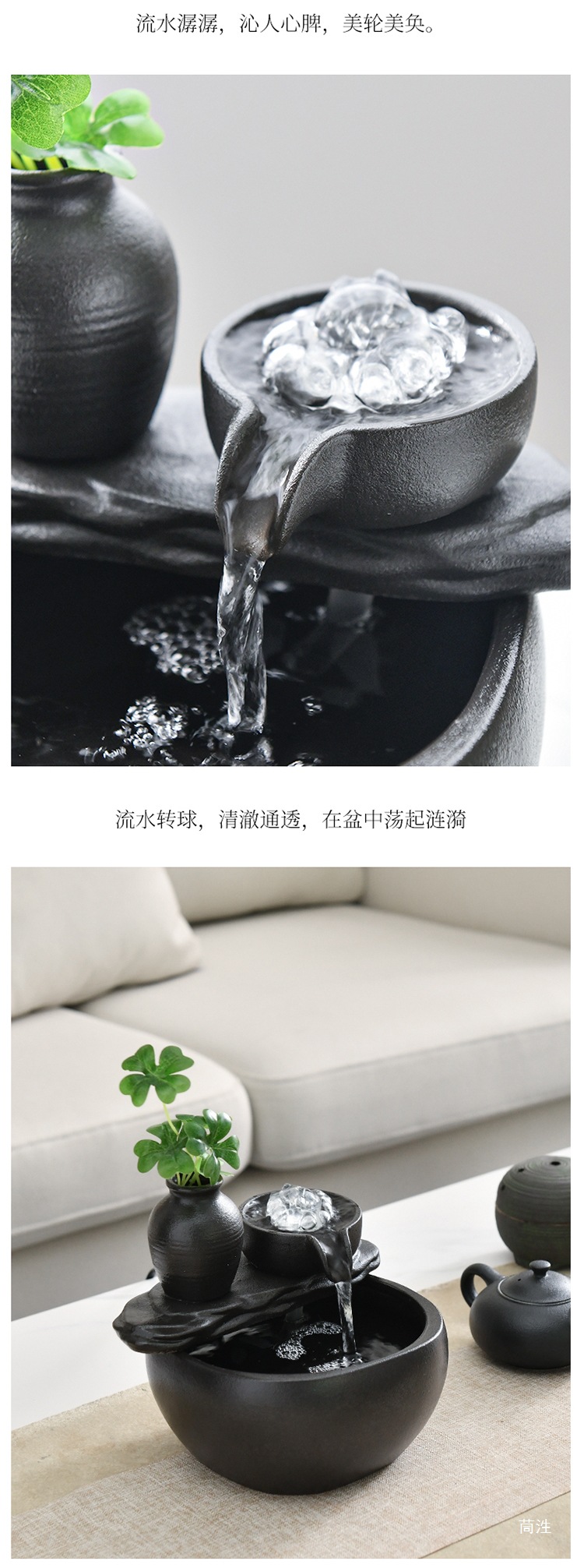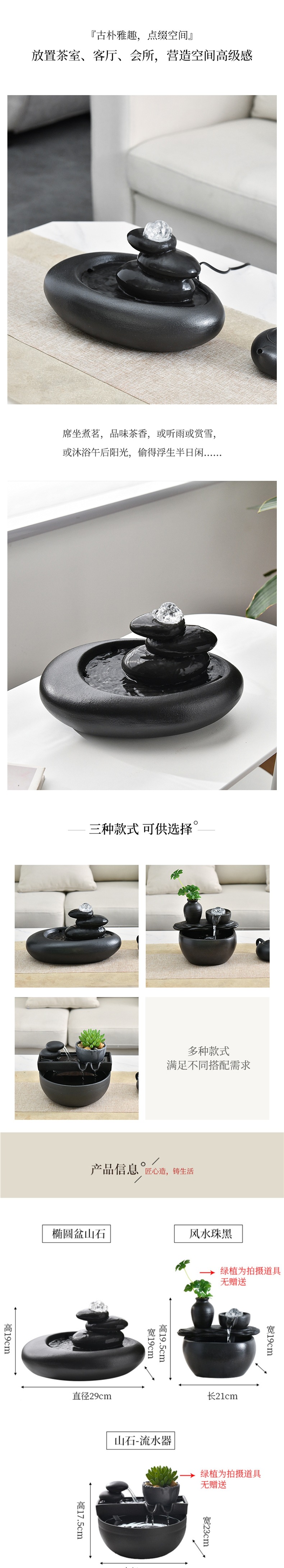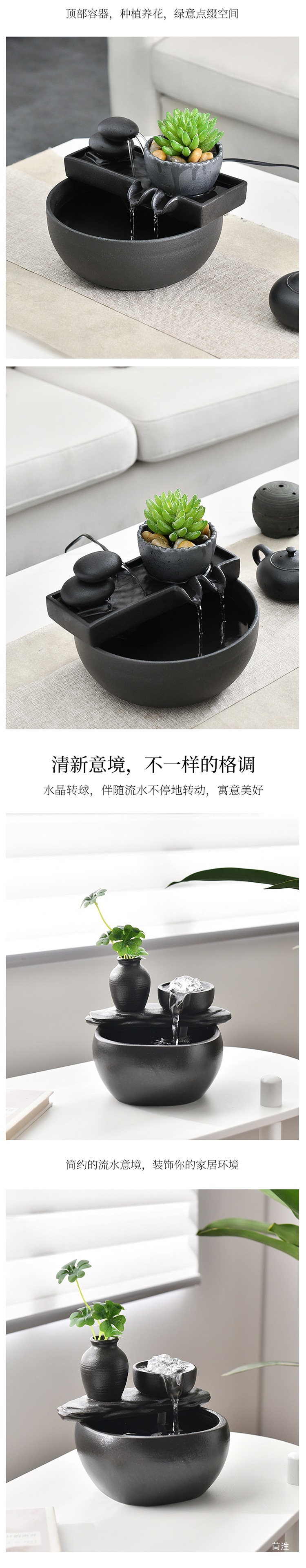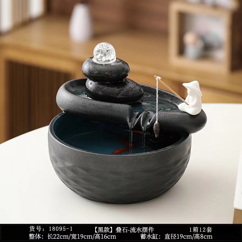 집 거실 TV 캐비닛 차실 책상 탁자 장식을위한 작은 세라믹 워터 볼 분수 장식품