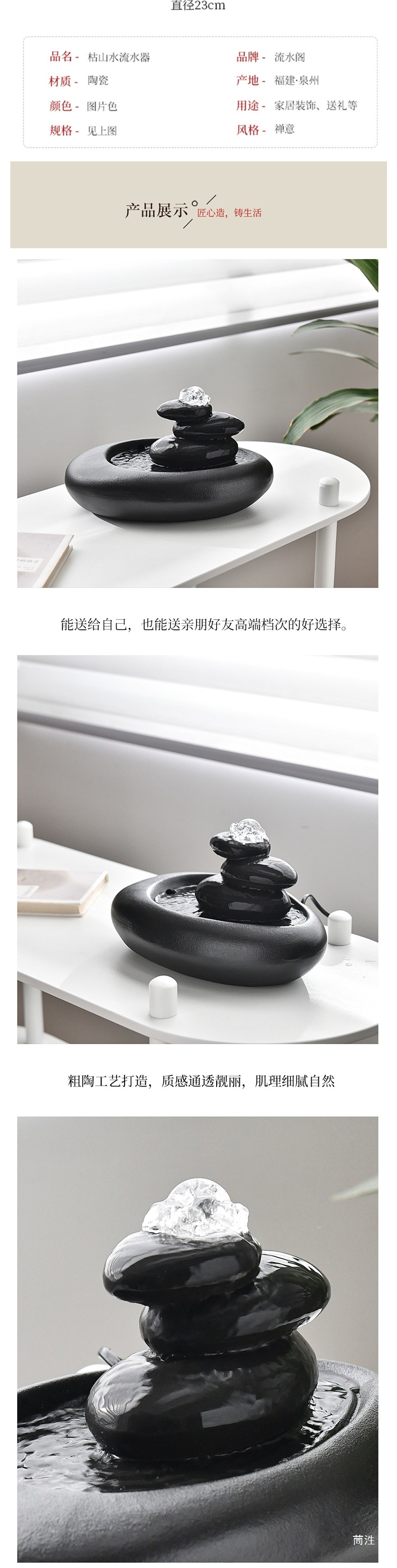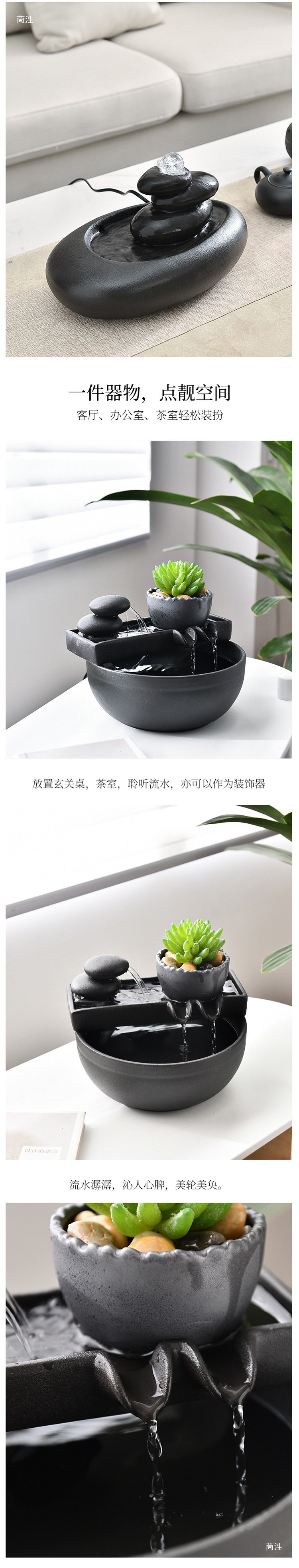 집 거실 TV 캐비닛 차실 책상 탁자 장식을위한 작은 세라믹 워터 볼 분수 장식품스토어 가기