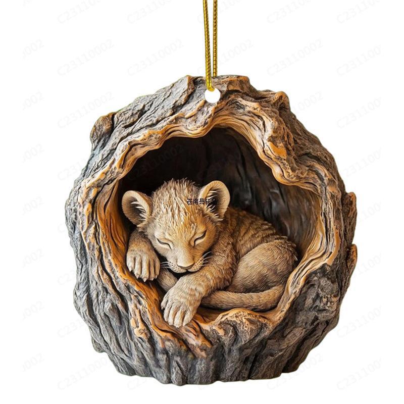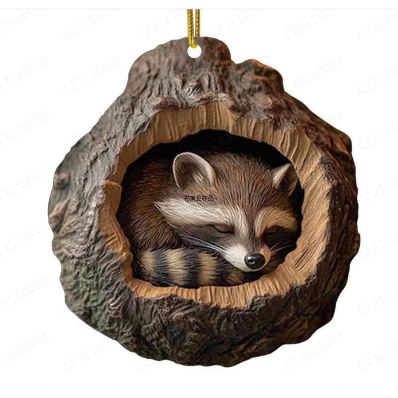 국경 간 새로운 올빼미 너구리 크리스마스 장식 크리스마스 트리 펜던트 2D 평면 인쇄 아크릴 작은 펜던트