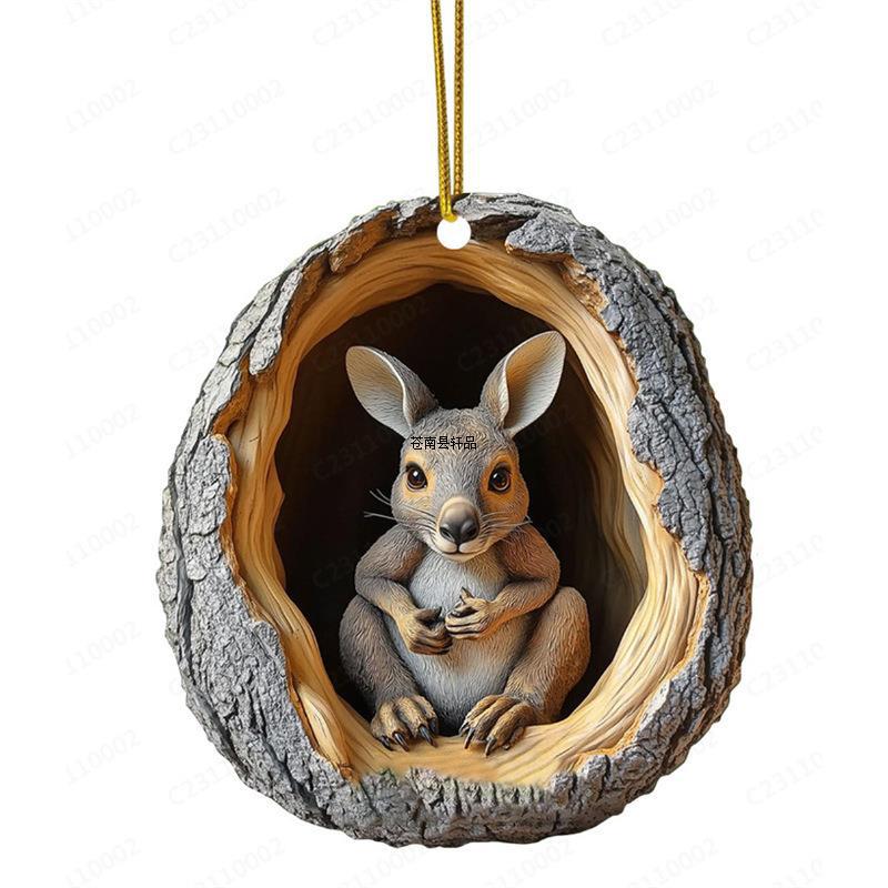 국경 간 새로운 올빼미 너구리 크리스마스 장식 크리스마스 트리 펜던트 2D 평면 인쇄 아크릴 작은 펜던트스토어 가기