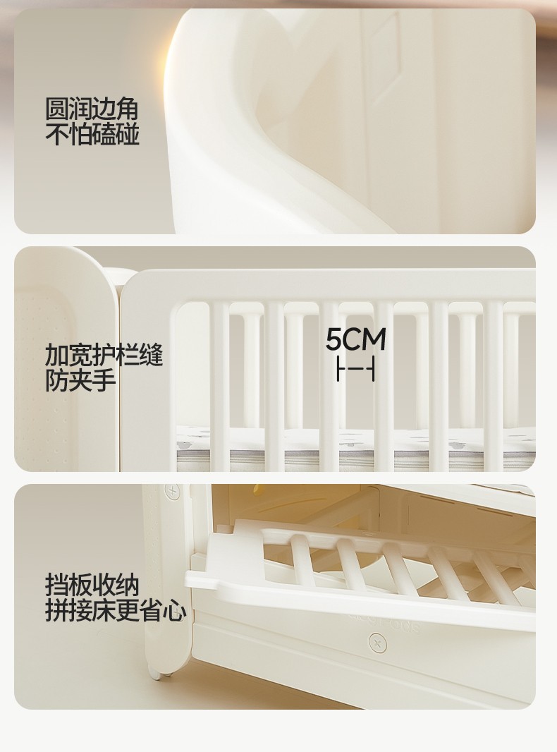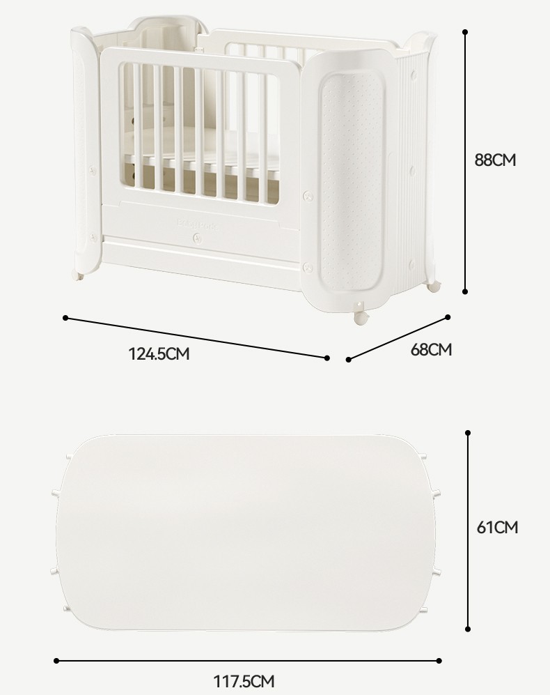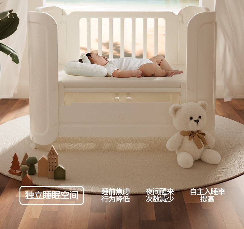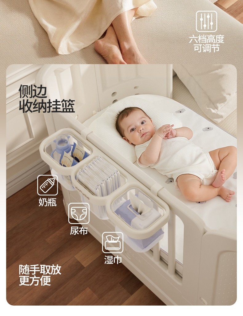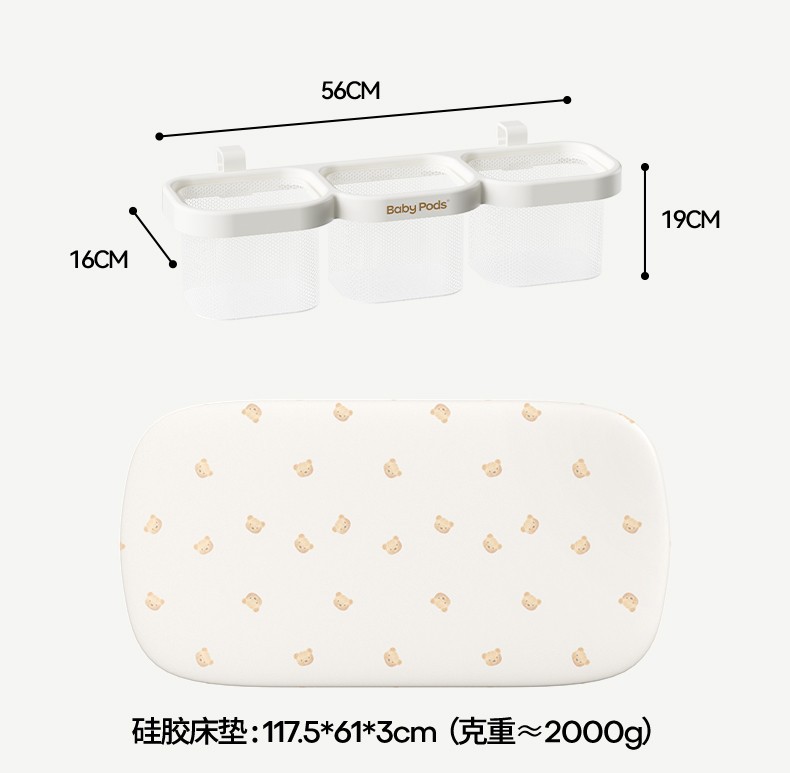 • [포름알데히드 0 및 진드기 방지] 유아용 침대 + 걸이바구니 + 실리콘 매트리스