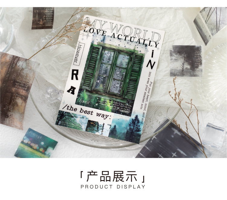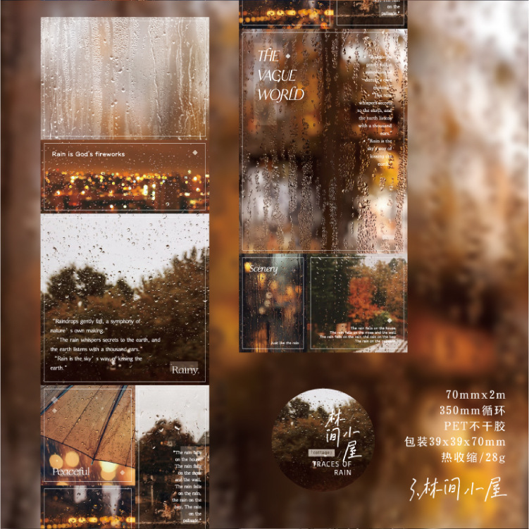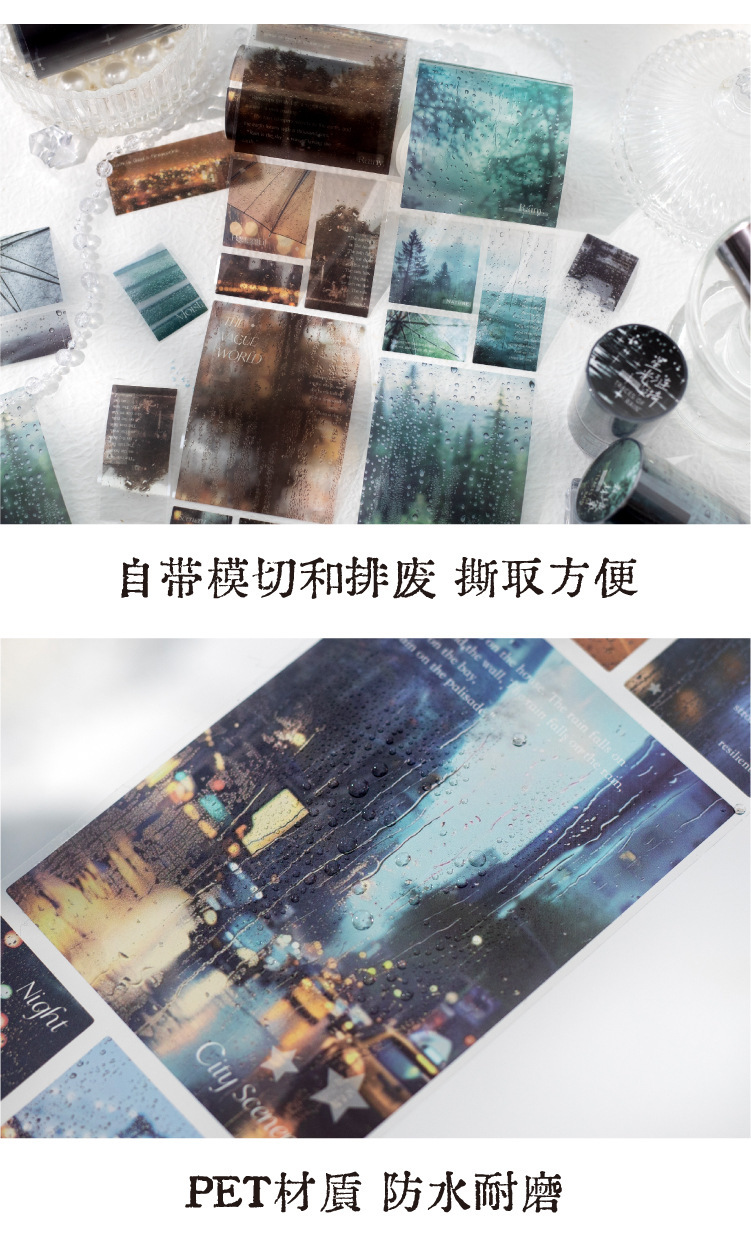 황혼의 비 트레일 시리즈 PET 다이컷 테이프 어두운 비오는 날씨 콜라주 소재 테이프 4종