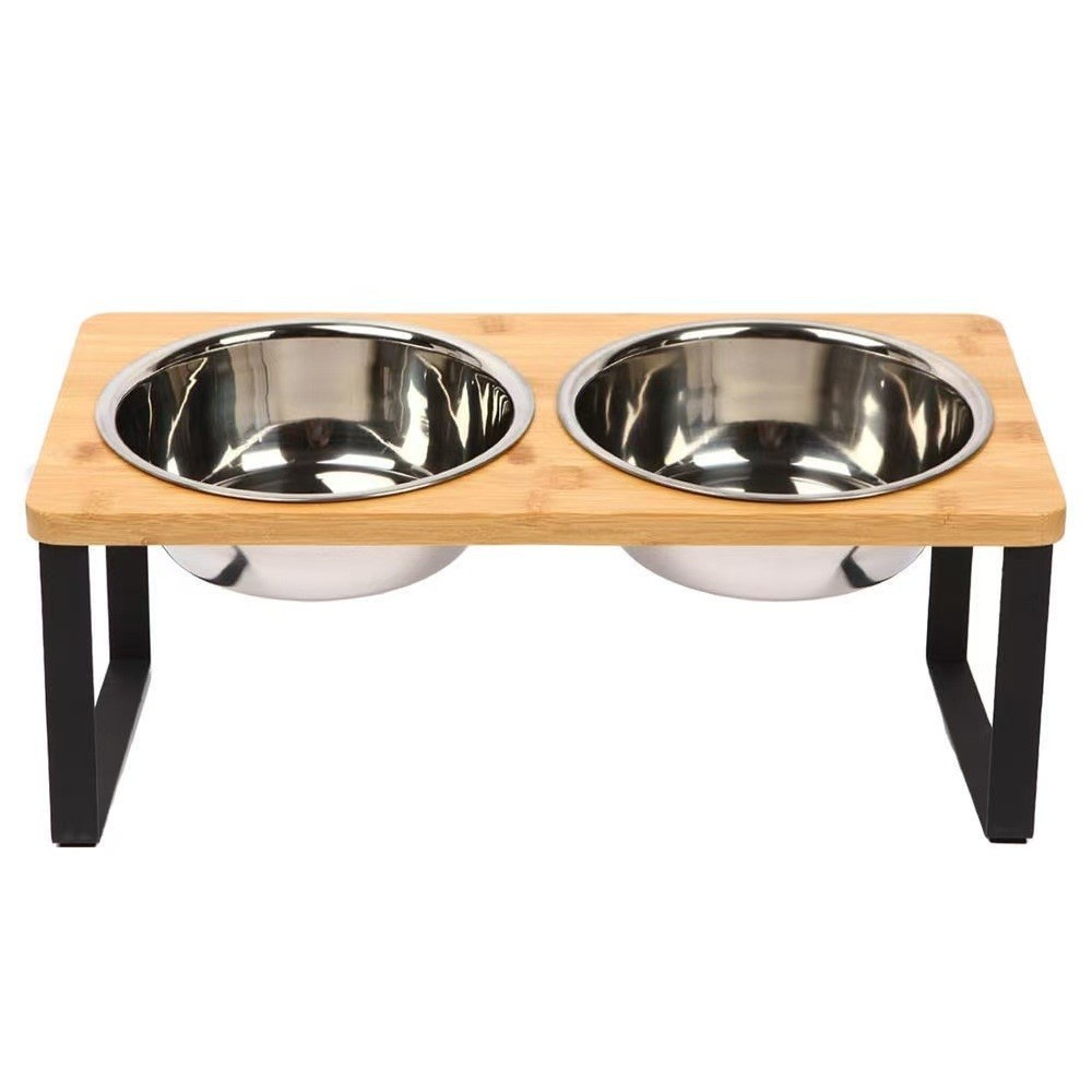국경 간 인기 판매 애완 동물 그릇 고양이 그릇 작은 개 그릇, 대나무 목재와 스테인레스 스틸 그릇 애완 동물 피더