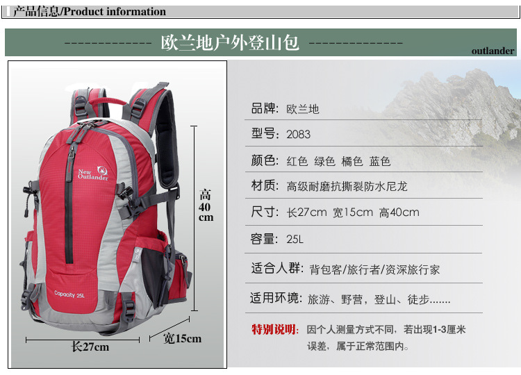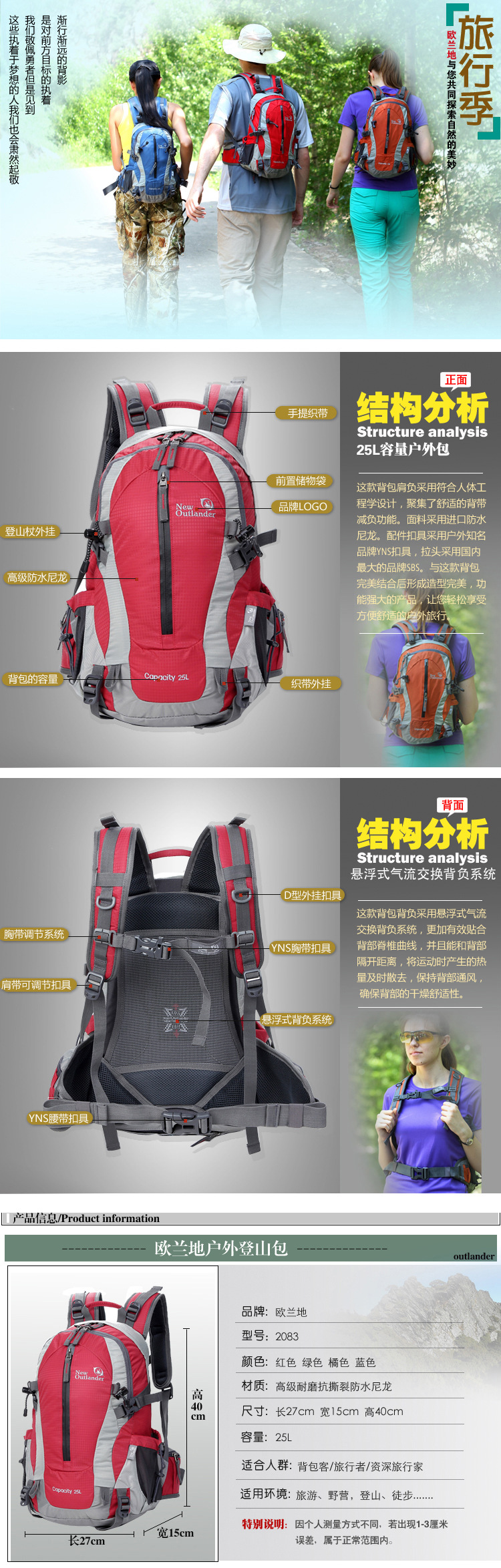 Outlander新款登山包 野外休闲包 野外专用包 登山包防水背包攻顶登山包