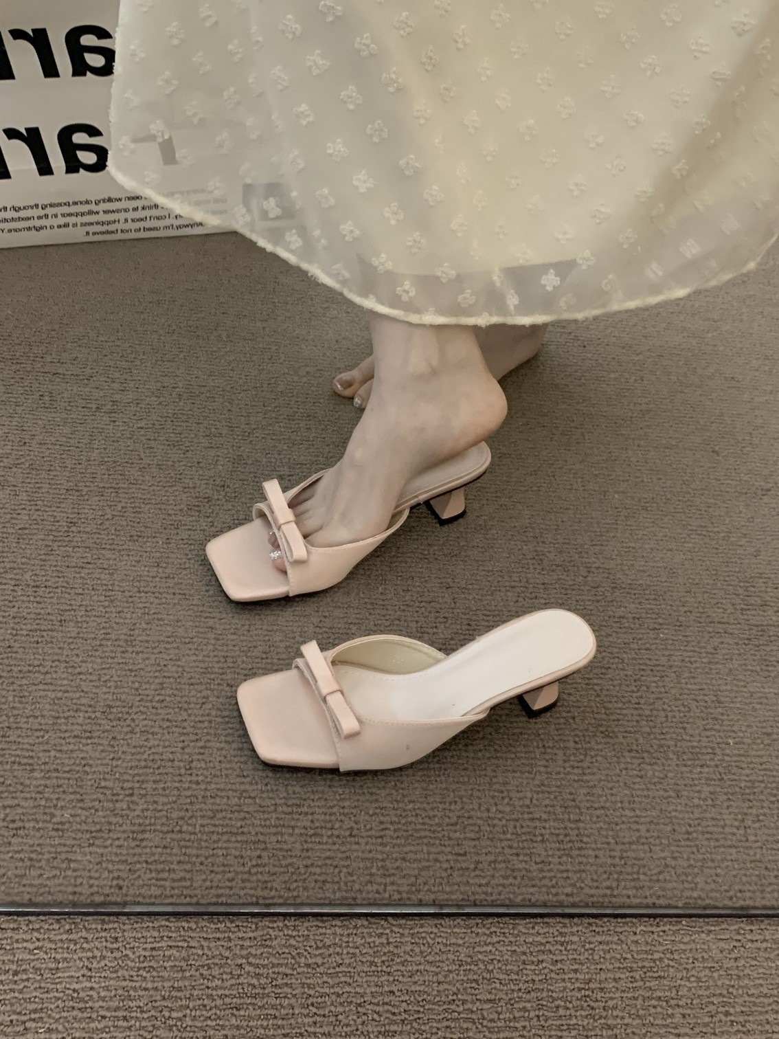 라이트 핑크 프렌치 하이힐 슬리퍼 여성 겉옷 2025 신상 여름 스커트 스타일 스틸레토 샌들
