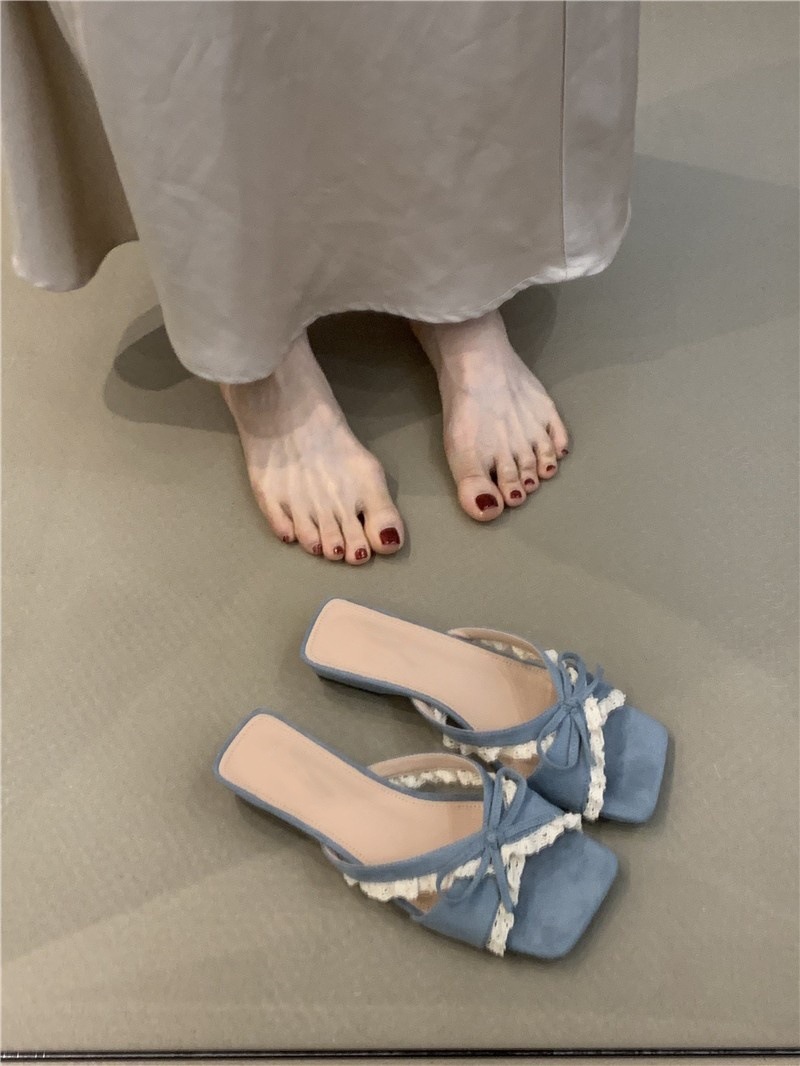여성을위한 부드러운 요정 샌들 2025 여름 프렌치 스위트 스커트 보우 오픈 토우 스트랩 샌들