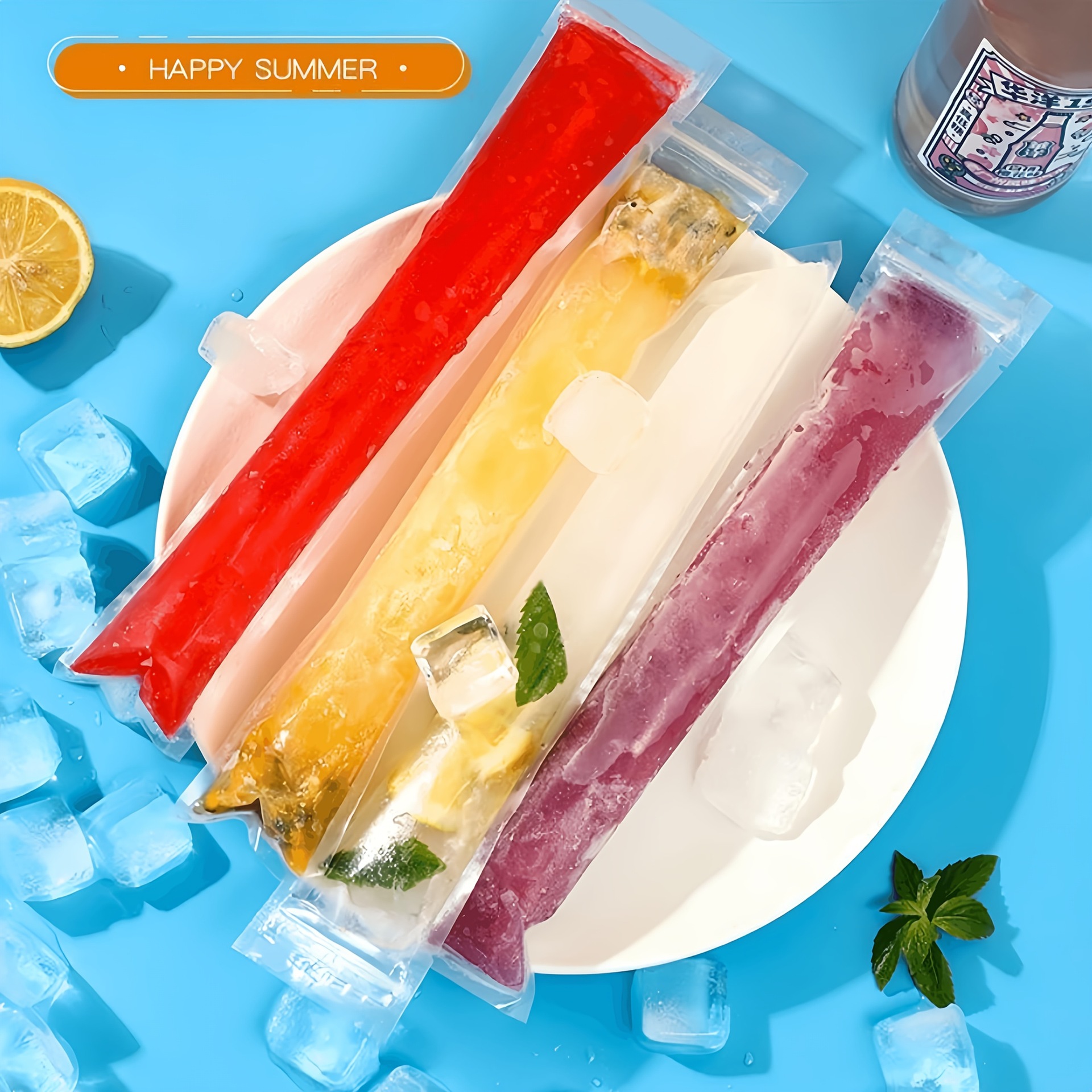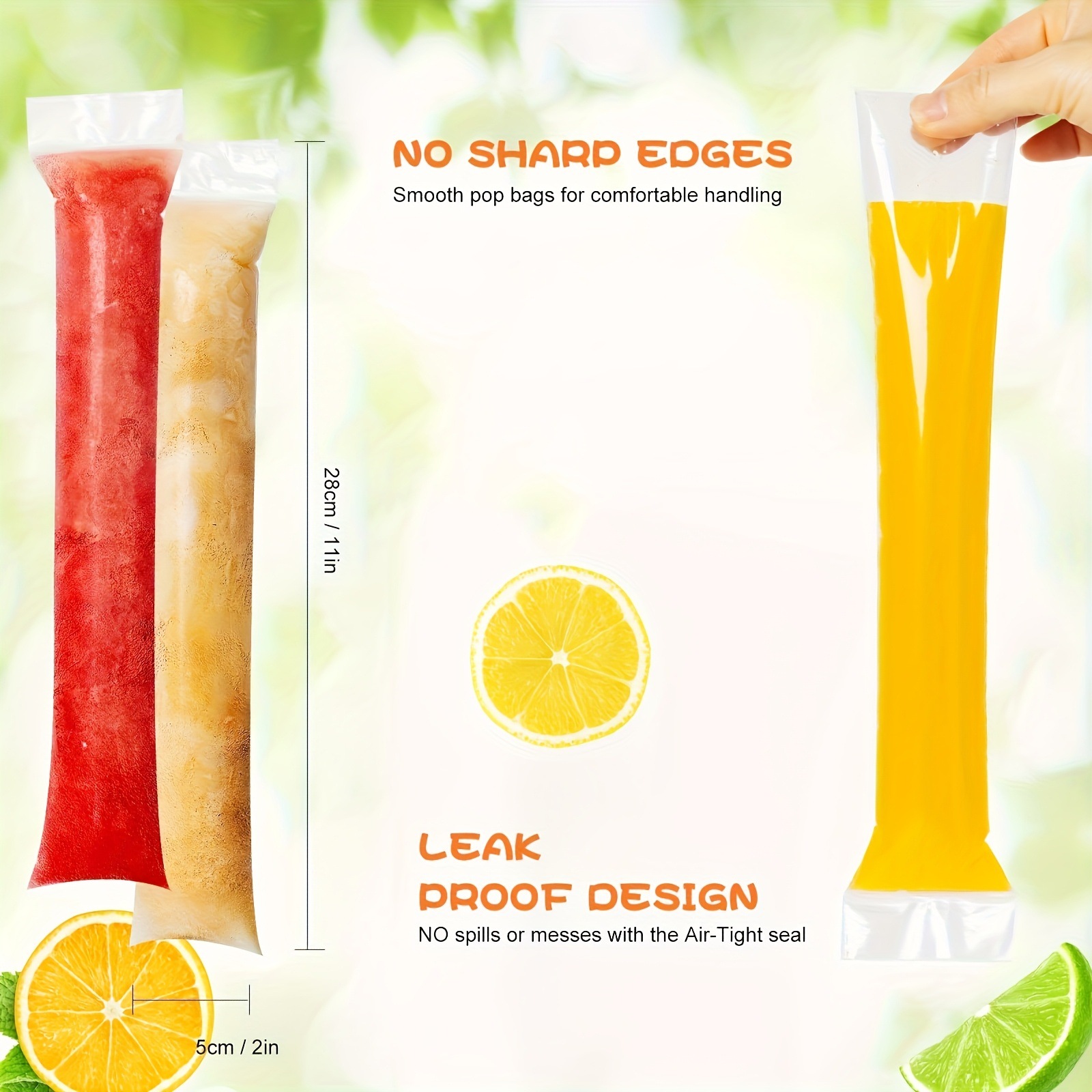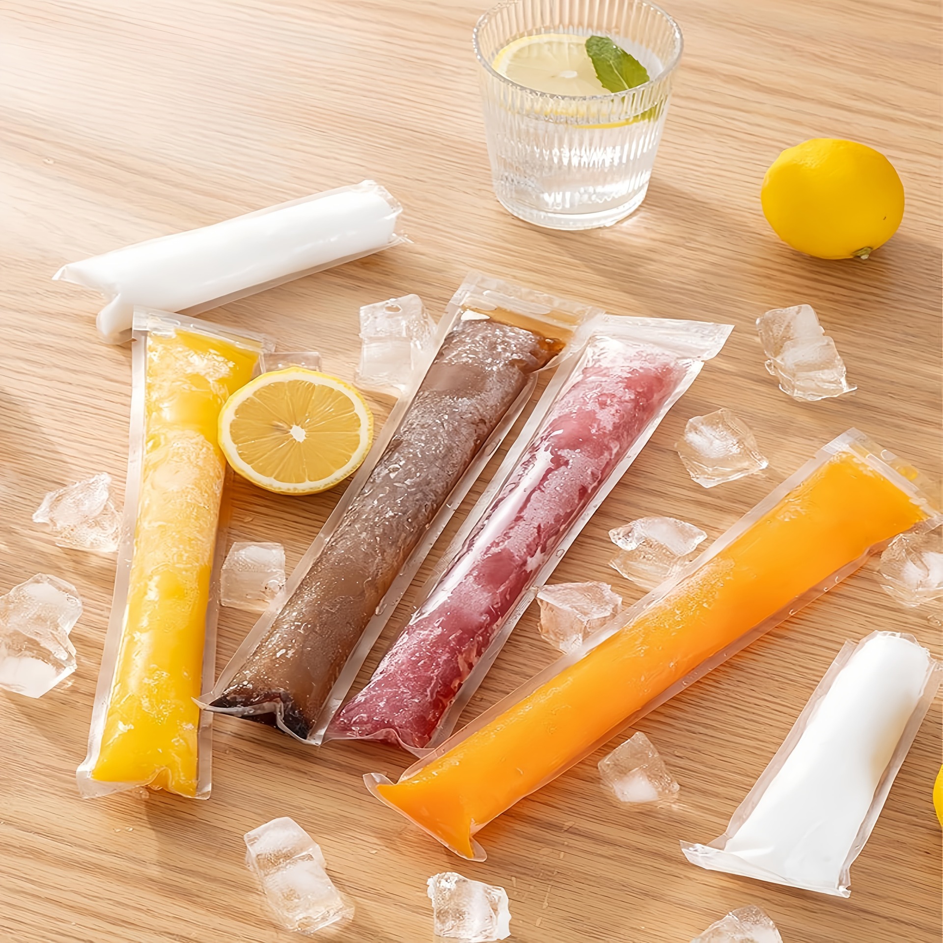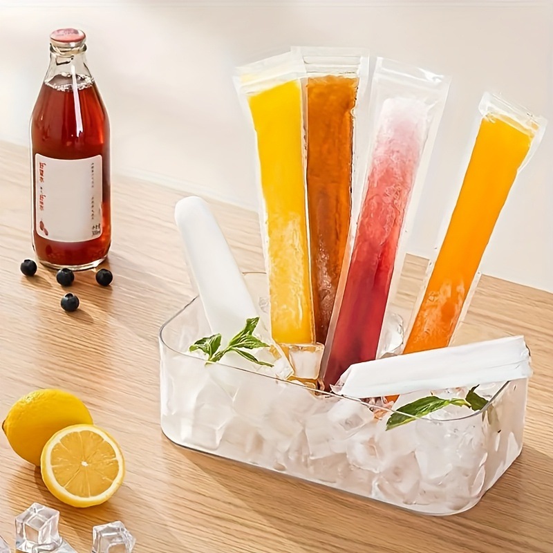 일회용 아이스바 봉투 50개, 식품 등급의 얼음 봉투, 자동 밀봉 투명 봉투, 아이스바 봉투 몰드