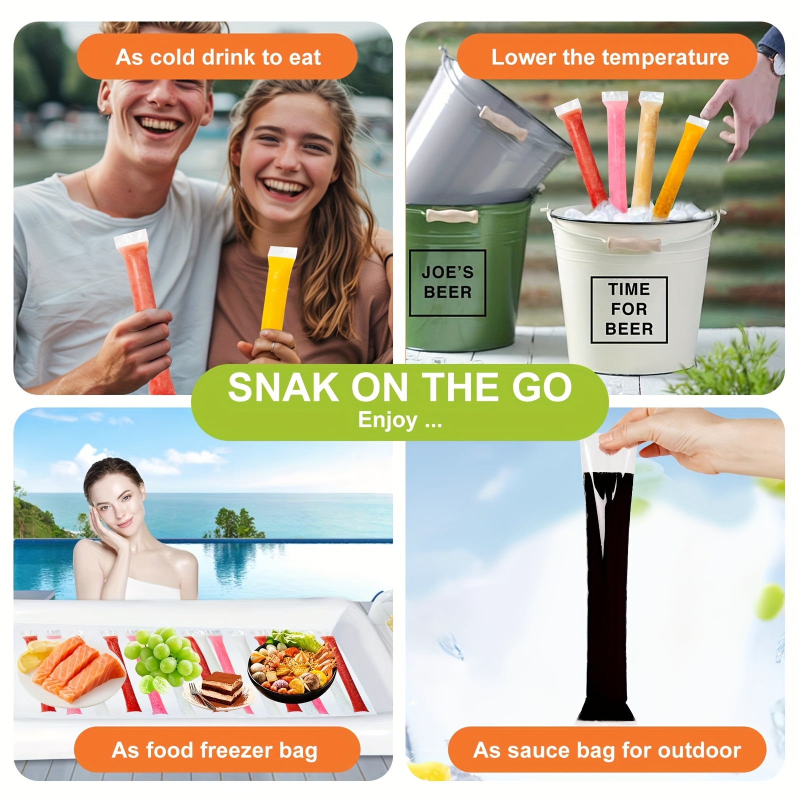 일회용 아이스바 봉투 50개, 식품 등급의 얼음 봉투, 자동 밀봉 투명 봉투, 아이스바 봉투 몰드스토어 가기
