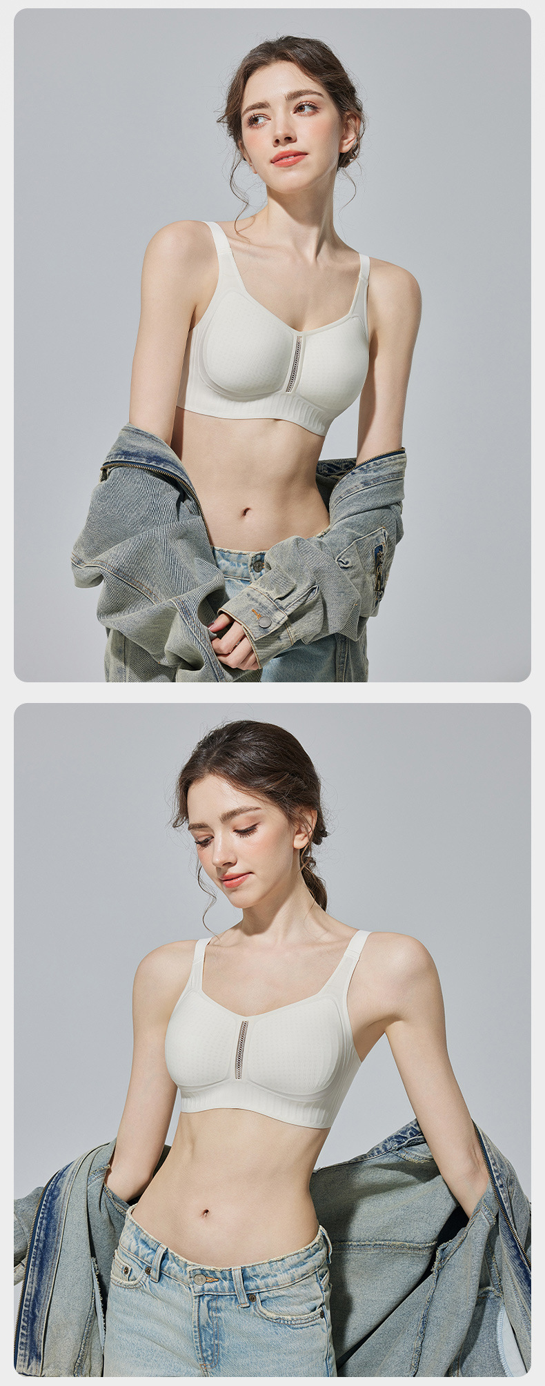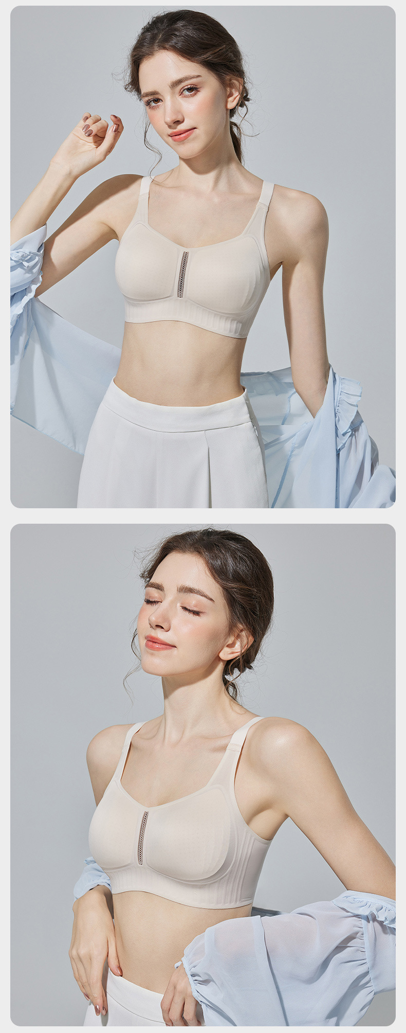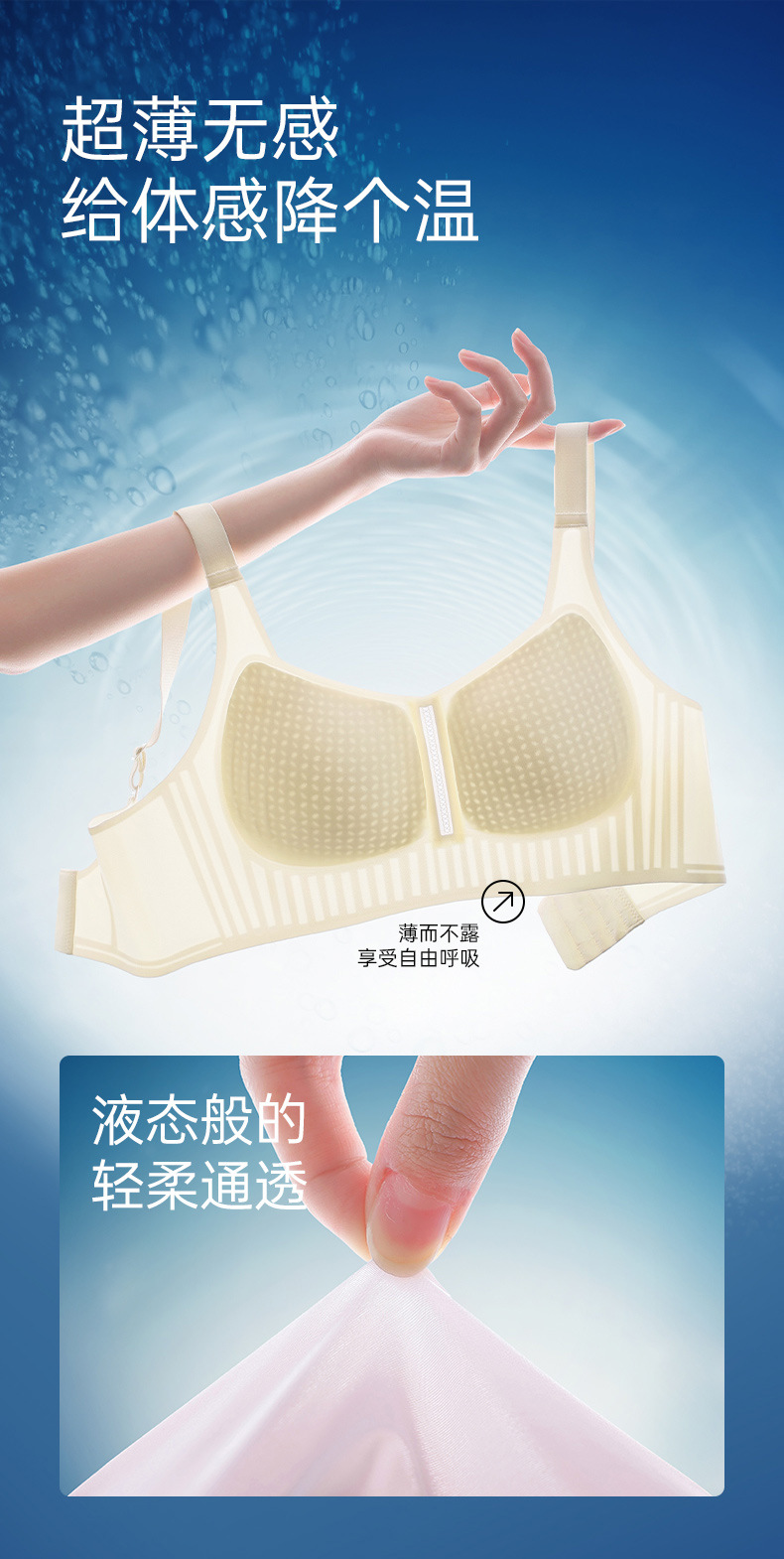 가슴이 큰 여성을 위한 심리스 속옷, 얇고 고정 컵, 아이스 실크 쿨링 젤리 스트립, 소프트 서포트 푸쉬업 브라, 여름스토어 가기