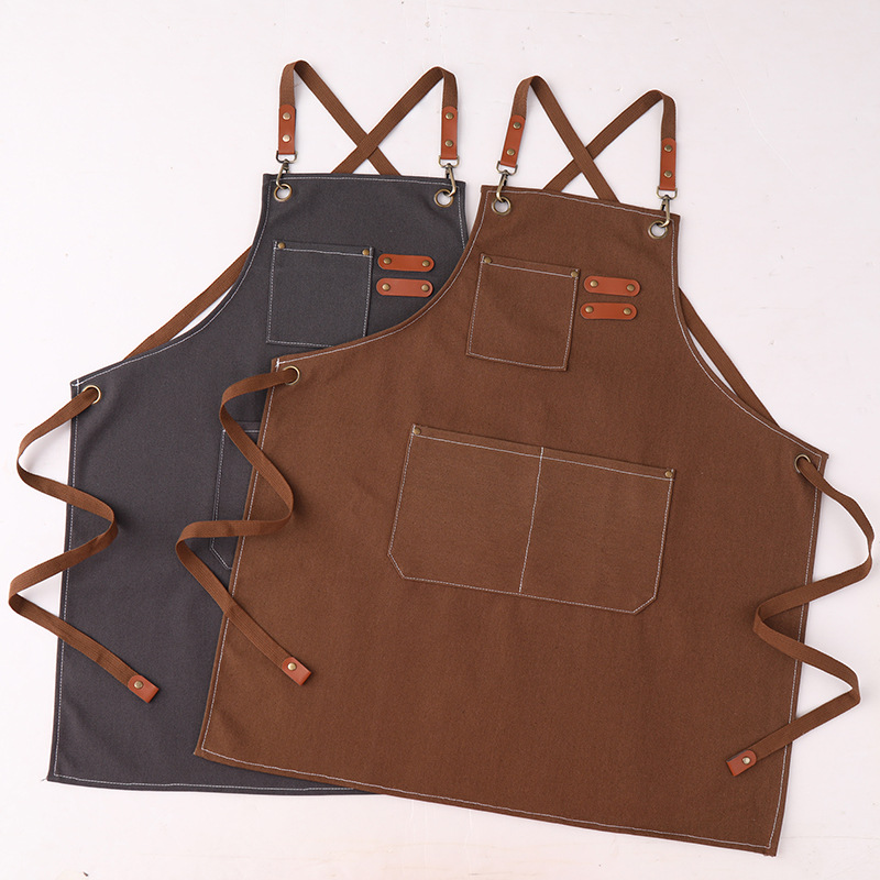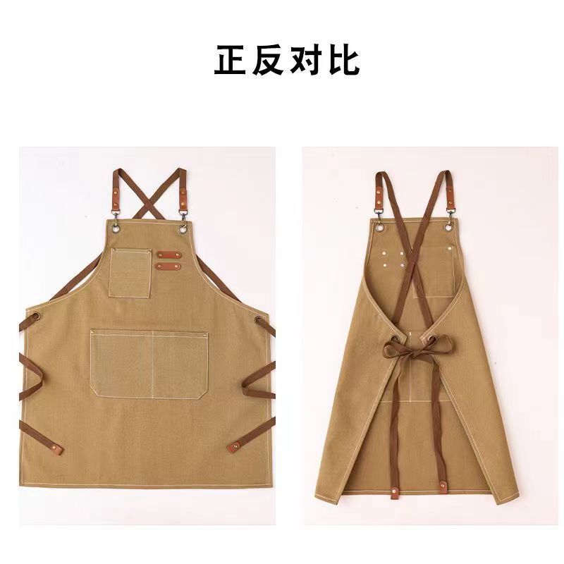 고급 앞치마 작업복, 밀크티, 커피, 두꺼운 패션 캔버스 매장 앞치마, 방오 및 내마모성 인쇄 광고 로고스토어 가기