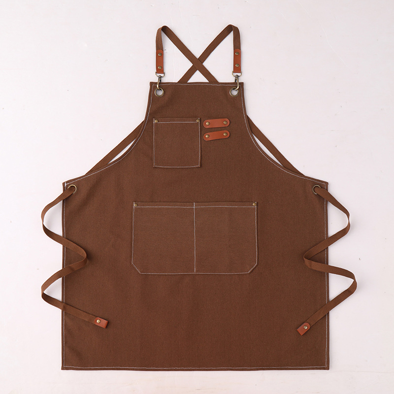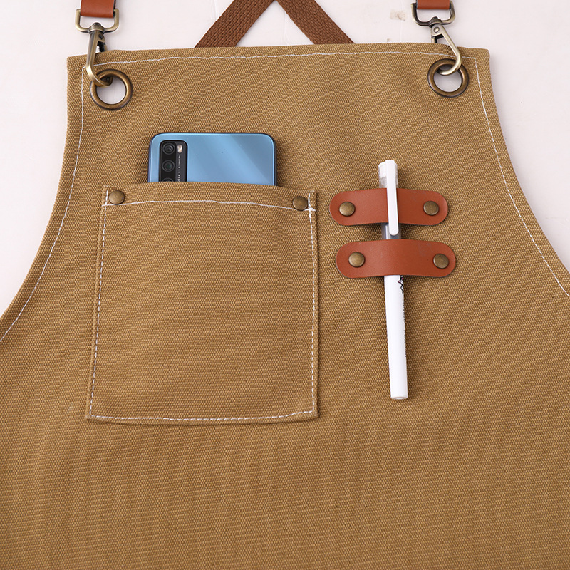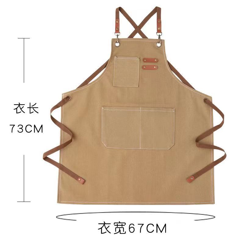 고급 앞치마 작업복, 밀크티, 커피, 두꺼운 패션 캔버스 매장 앞치마, 방오 및 내마모성 인쇄 광고 로고