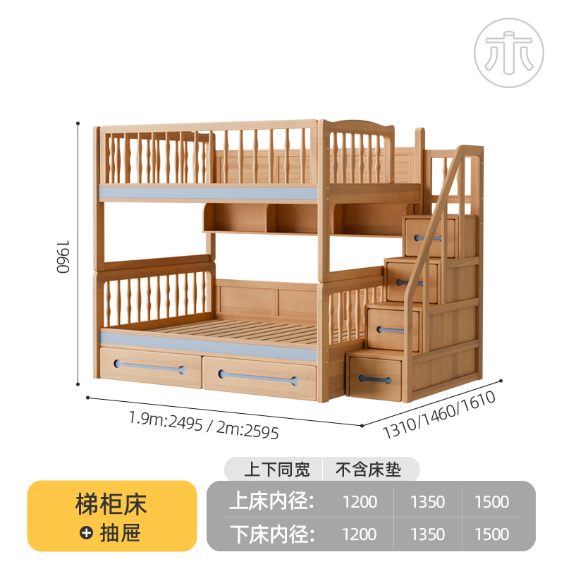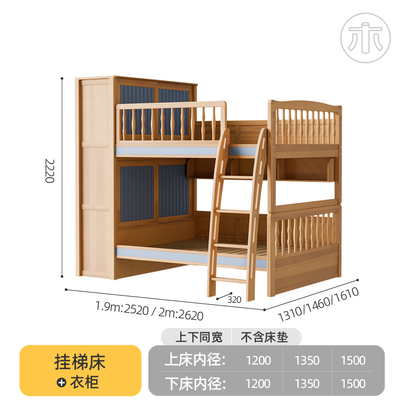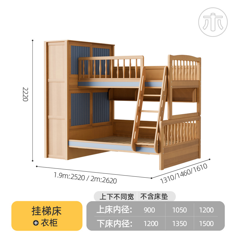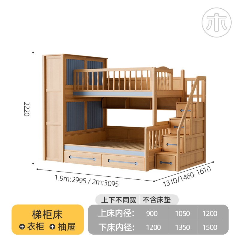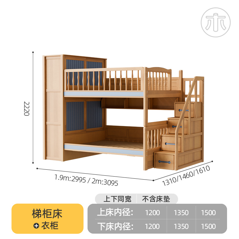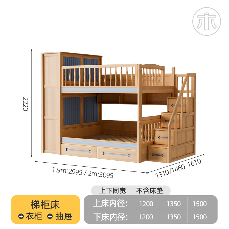 2층 침대, 성인용 높낮이 침대, 옷장이 있는 이층 침대, 작은 가정용 순수 수납 원목 어린이 침대스토어 가기