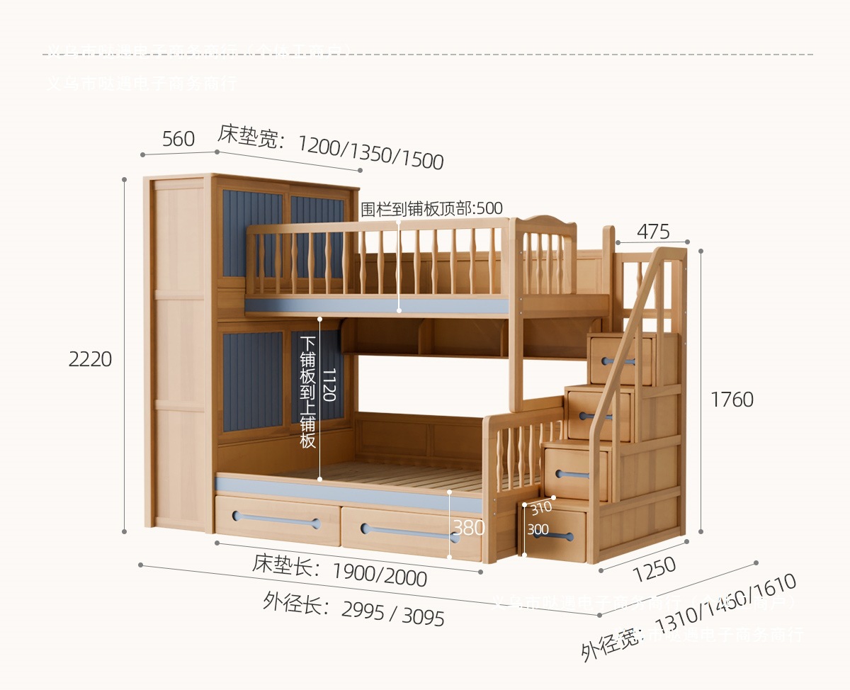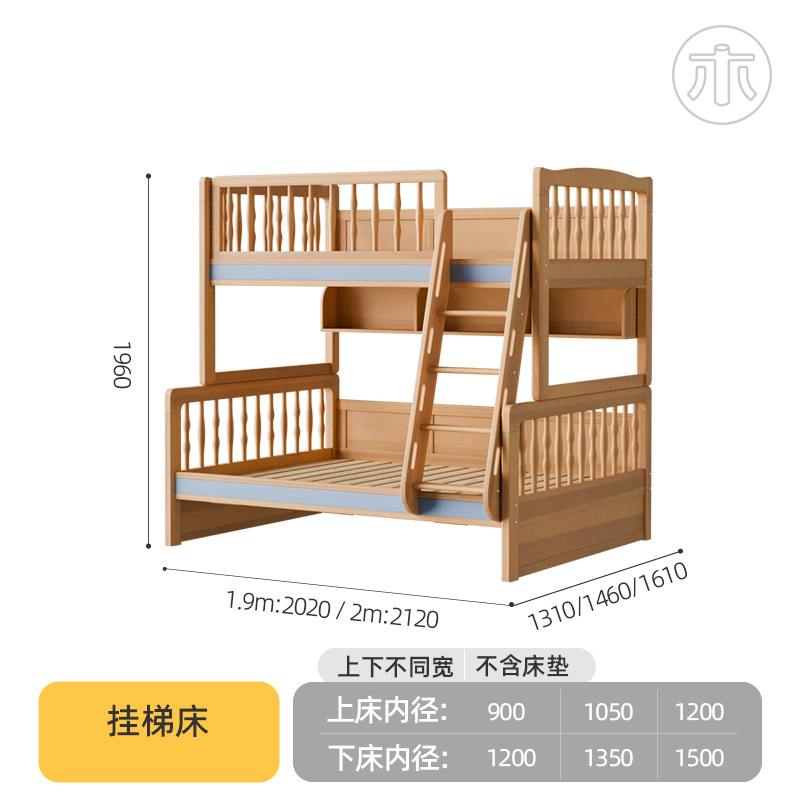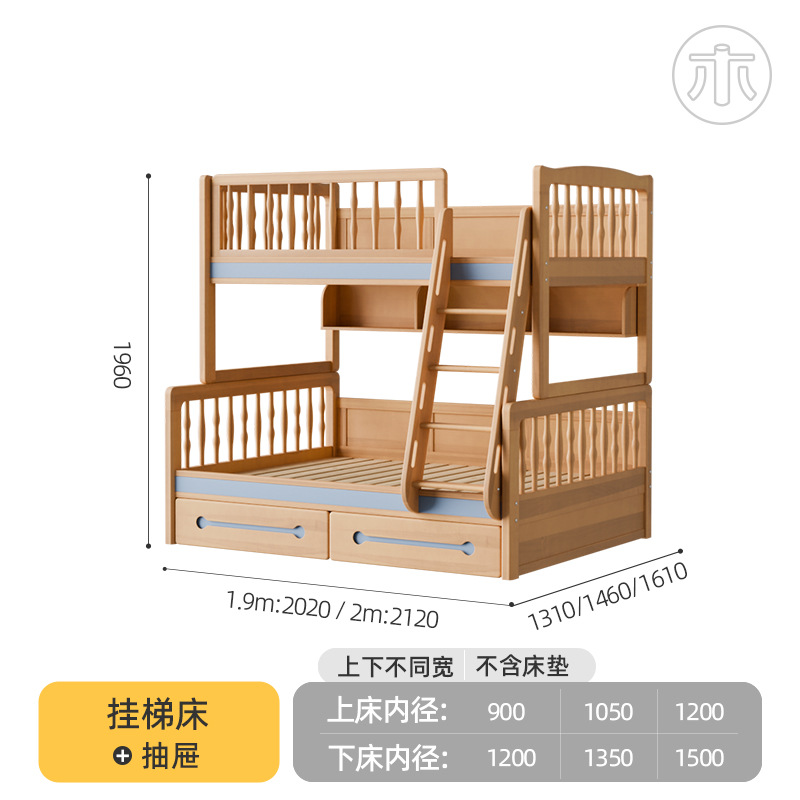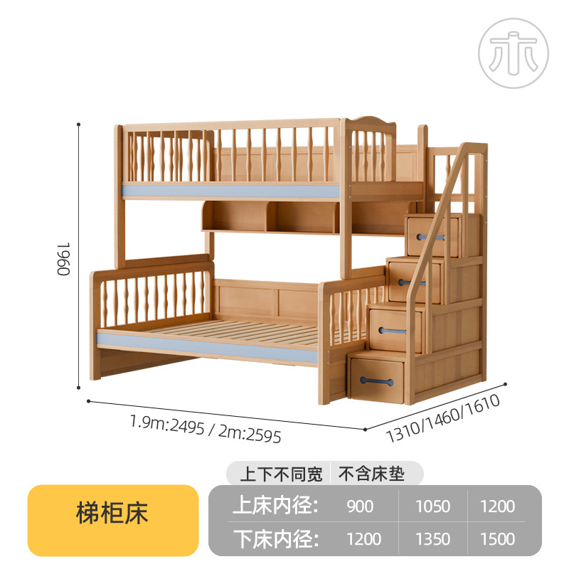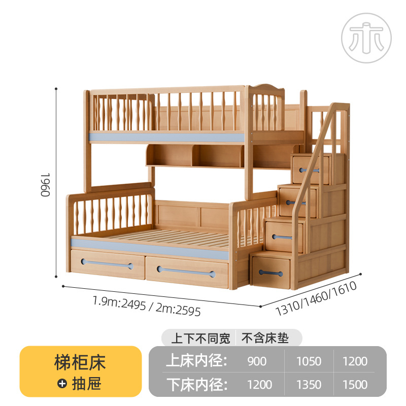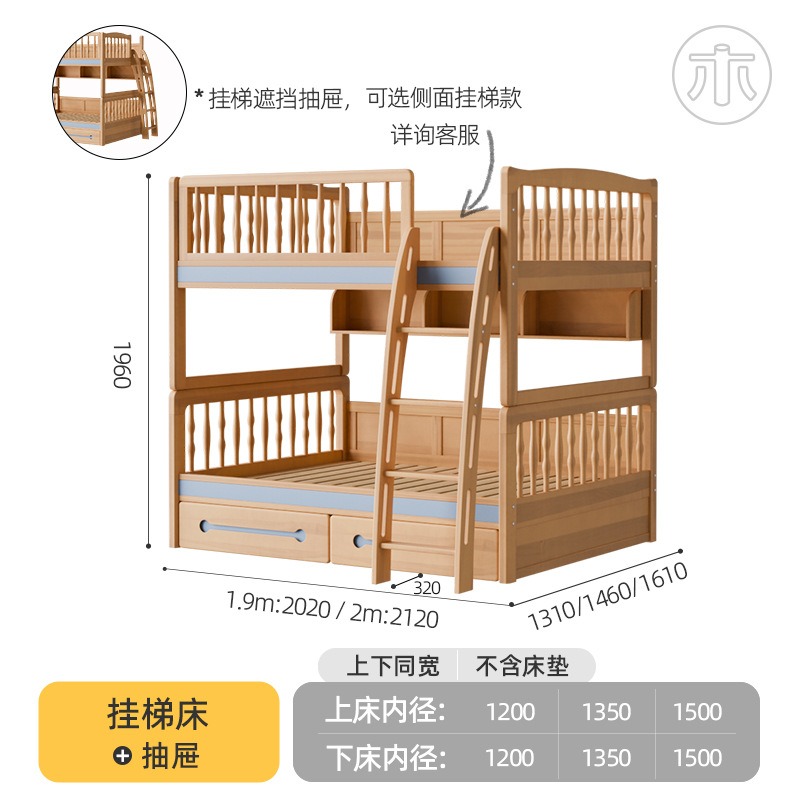 2층 침대, 성인용 높낮이 침대, 옷장이 있는 이층 침대, 작은 가정용 순수 수납 원목 어린이 침대스토어 가기