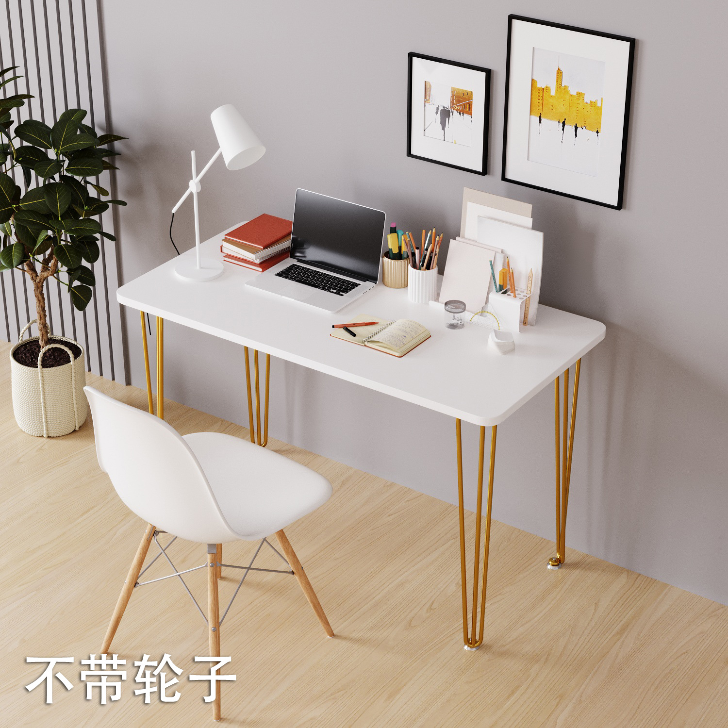 • 흰색 다층 보드, 바퀴가 달린 금색 강철 다리, 전체 높이 78cm