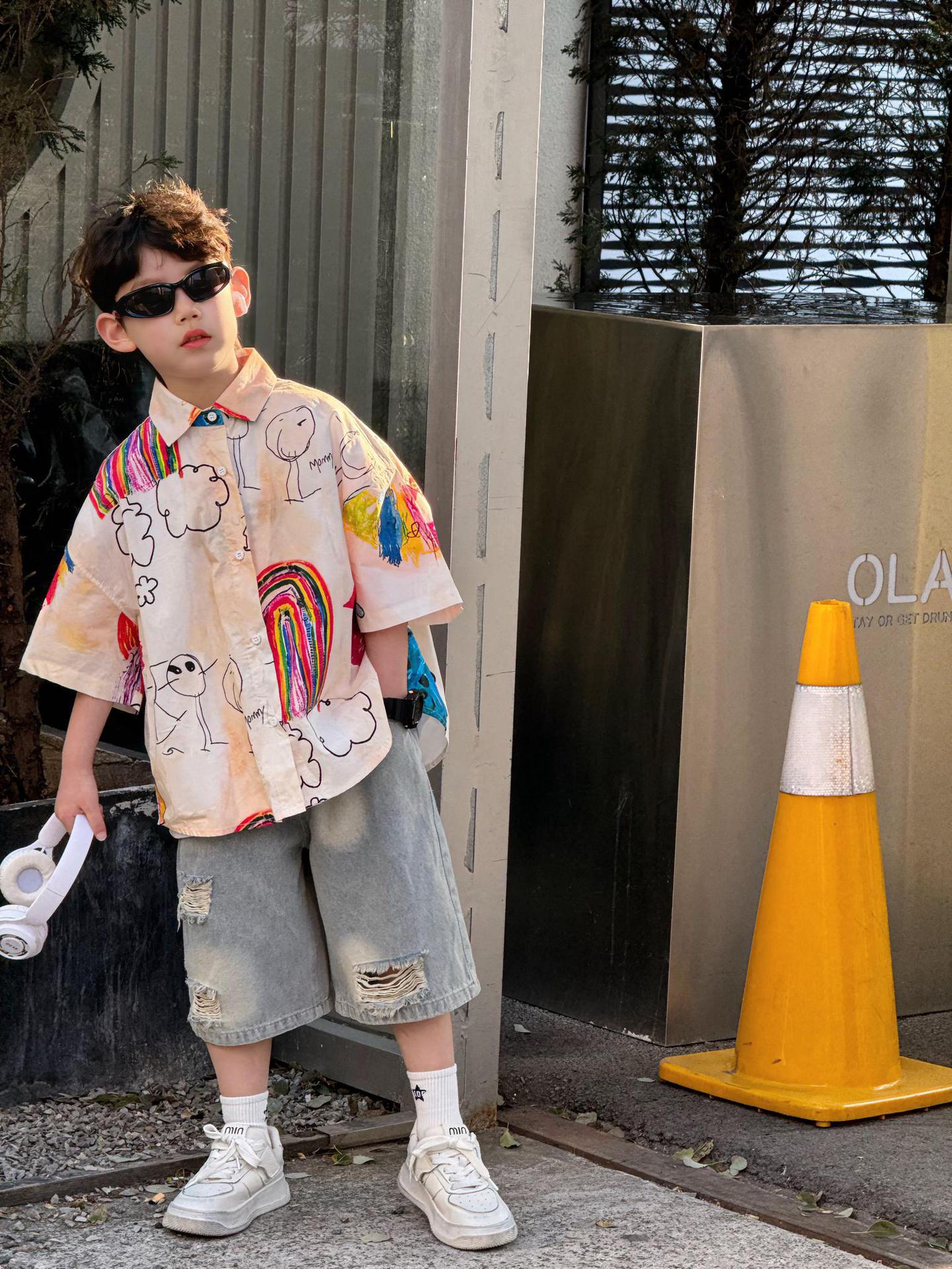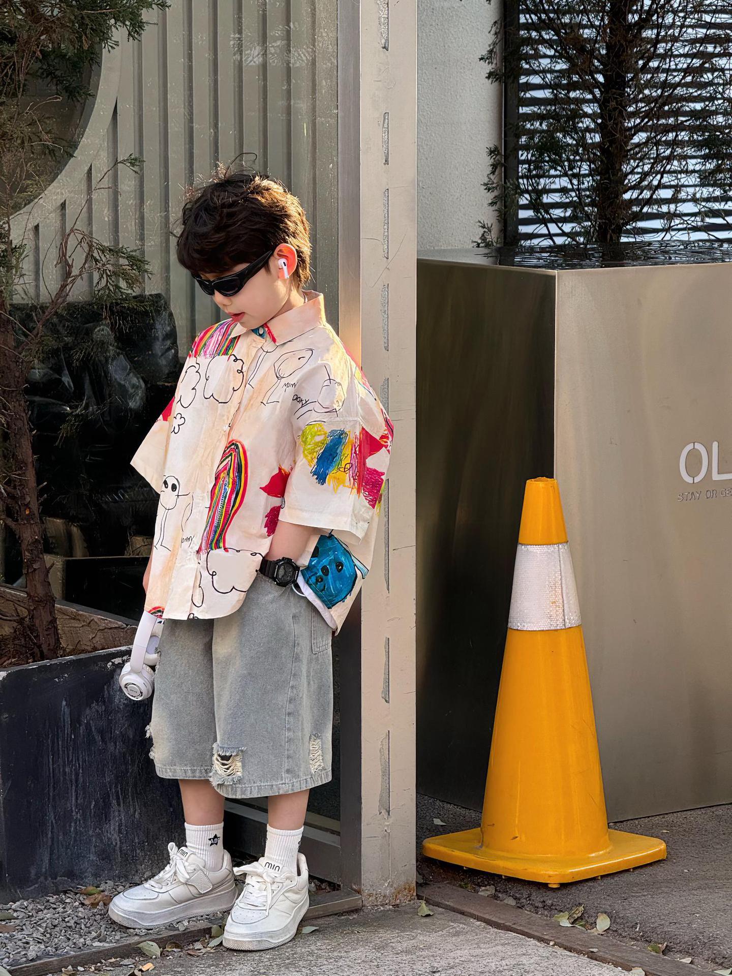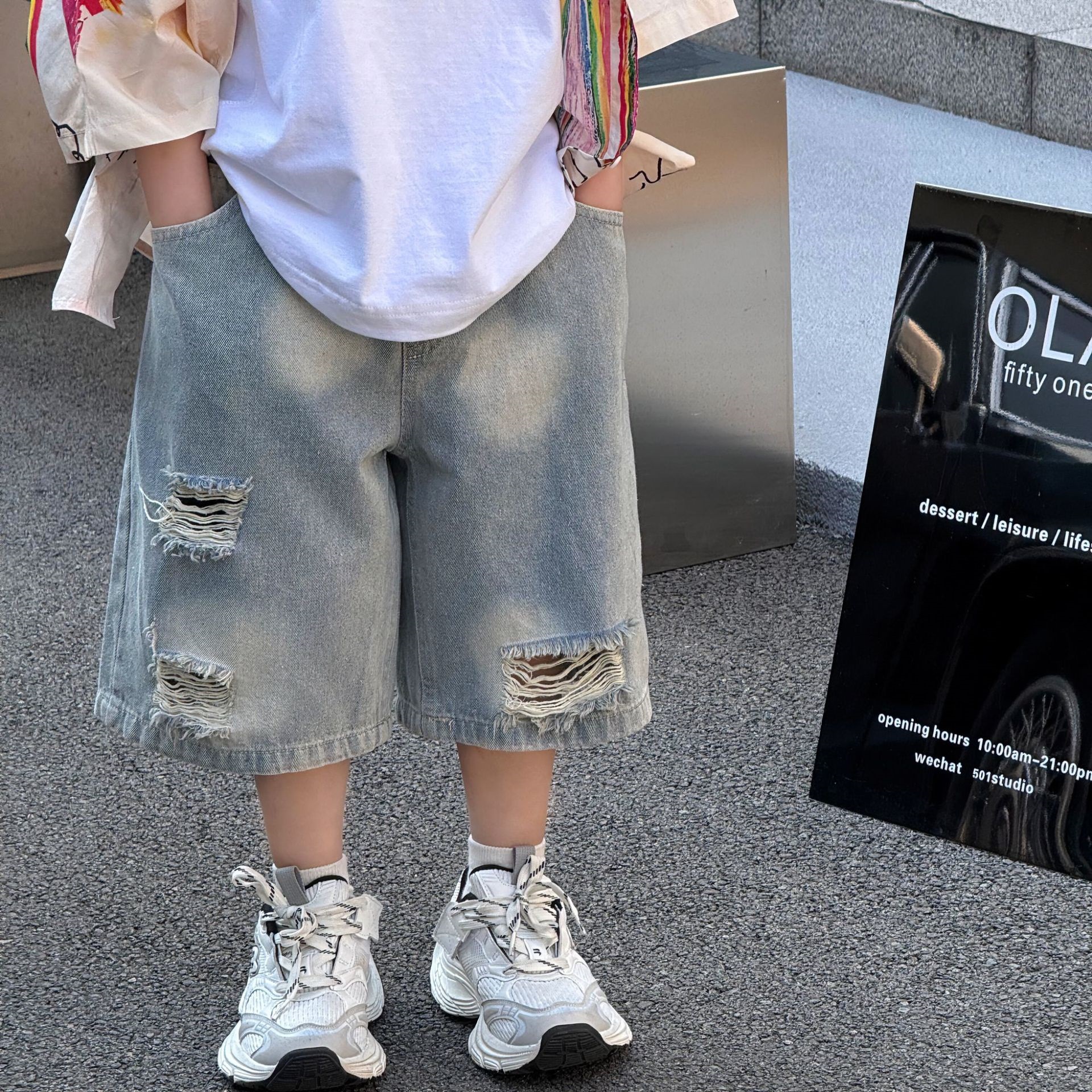 여름 신작 한국 스타일 소년 패션 다재다능한 심플 루즈 찢어진 청바지 아동 반바지 유행스토어 가기