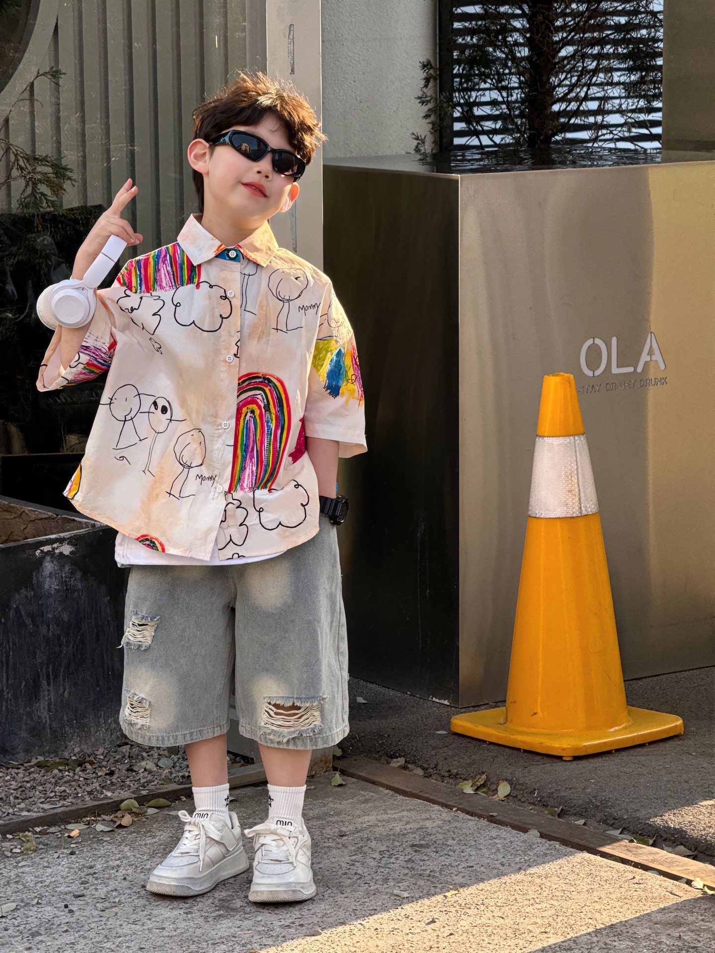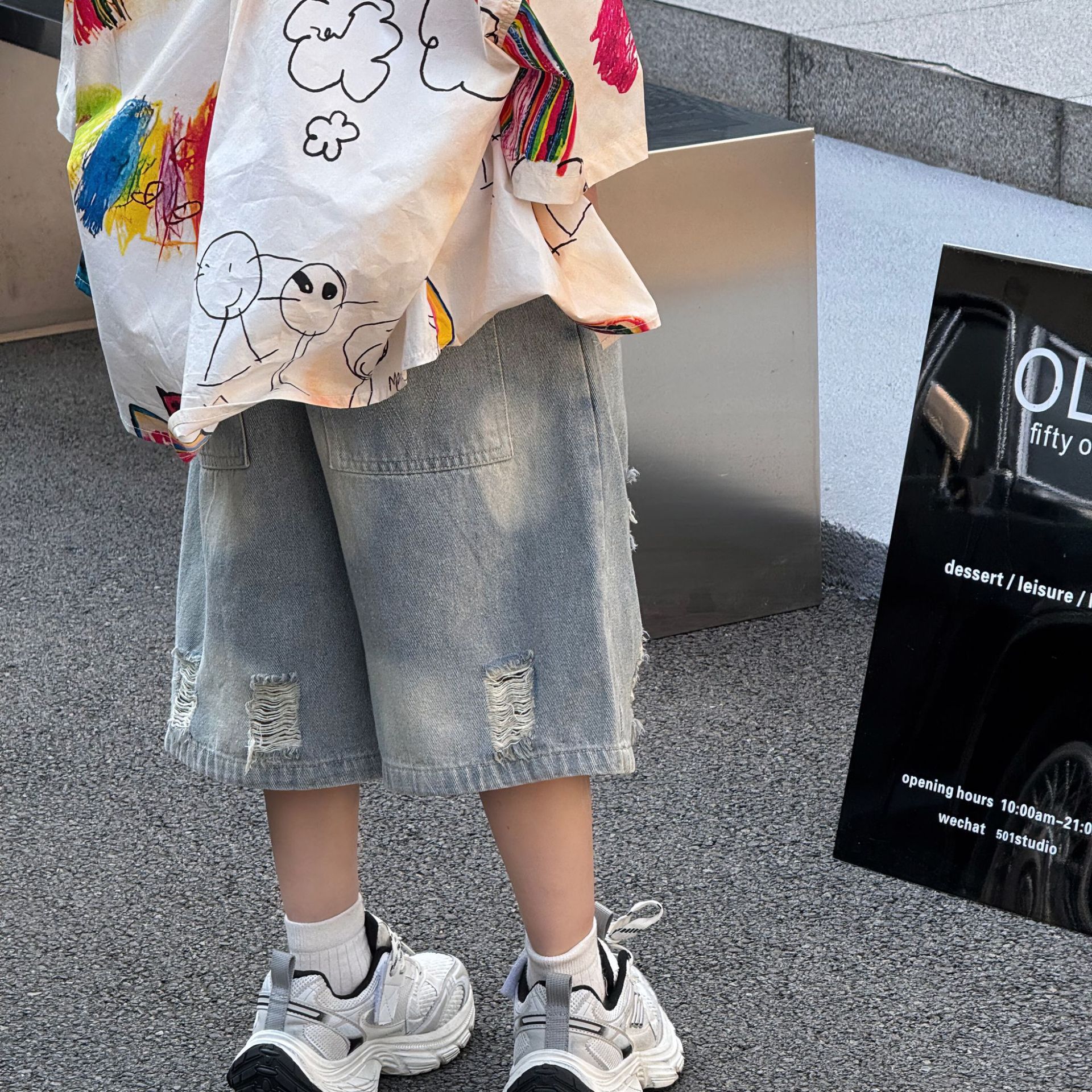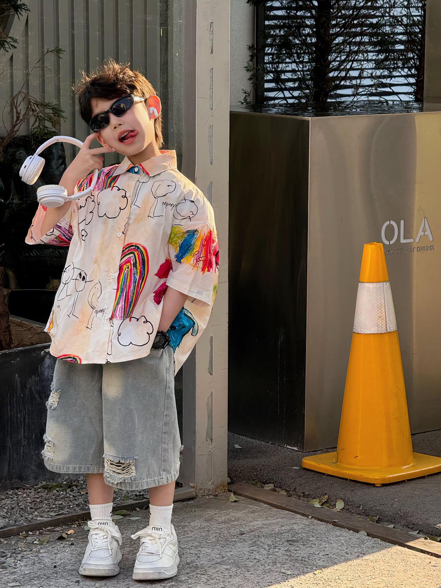 여름 신작 한국 스타일 소년 패션 다재다능한 심플 루즈 찢어진 청바지 아동 반바지 유행스토어 가기