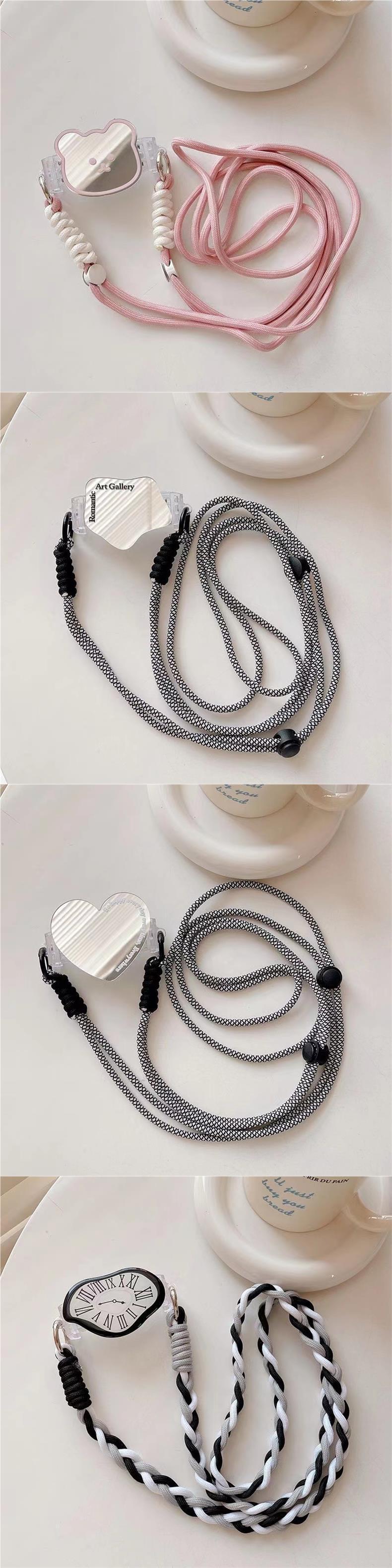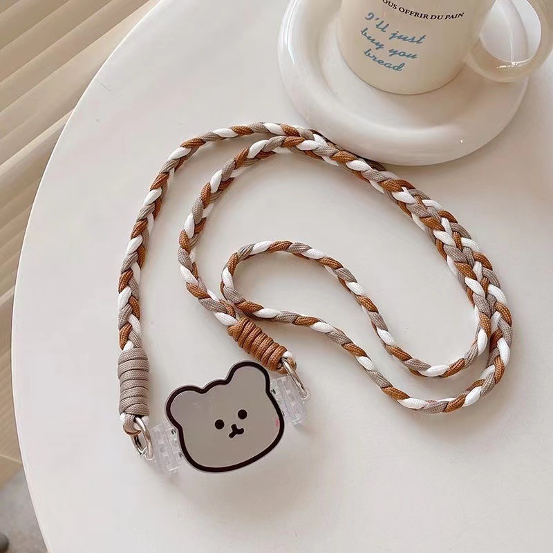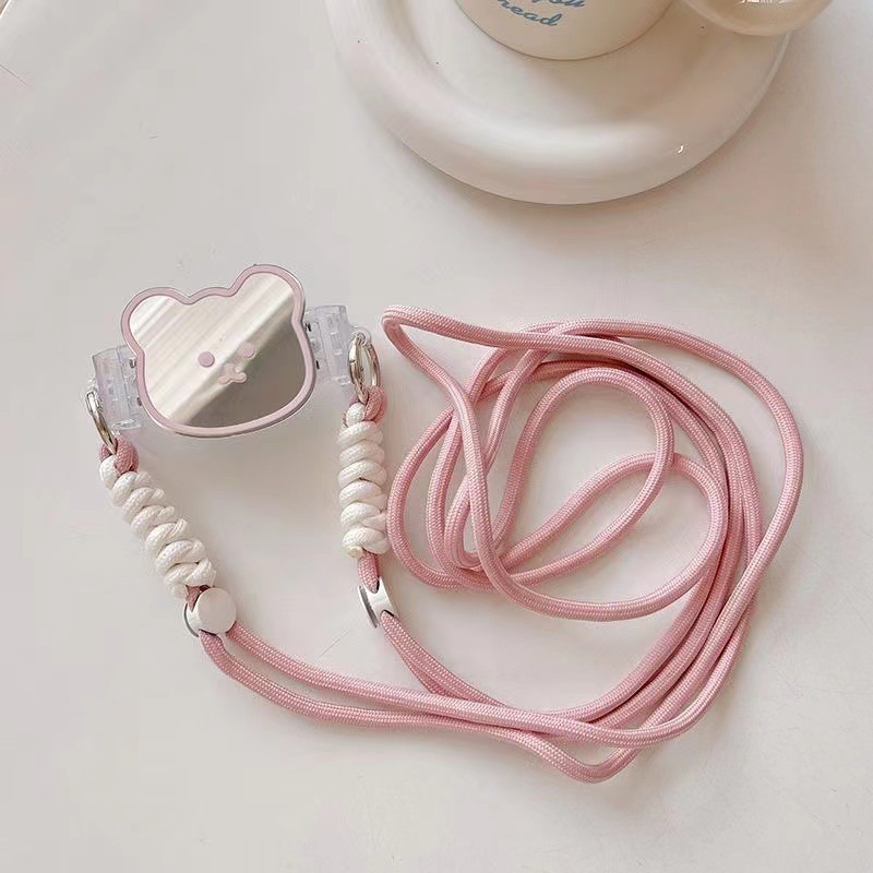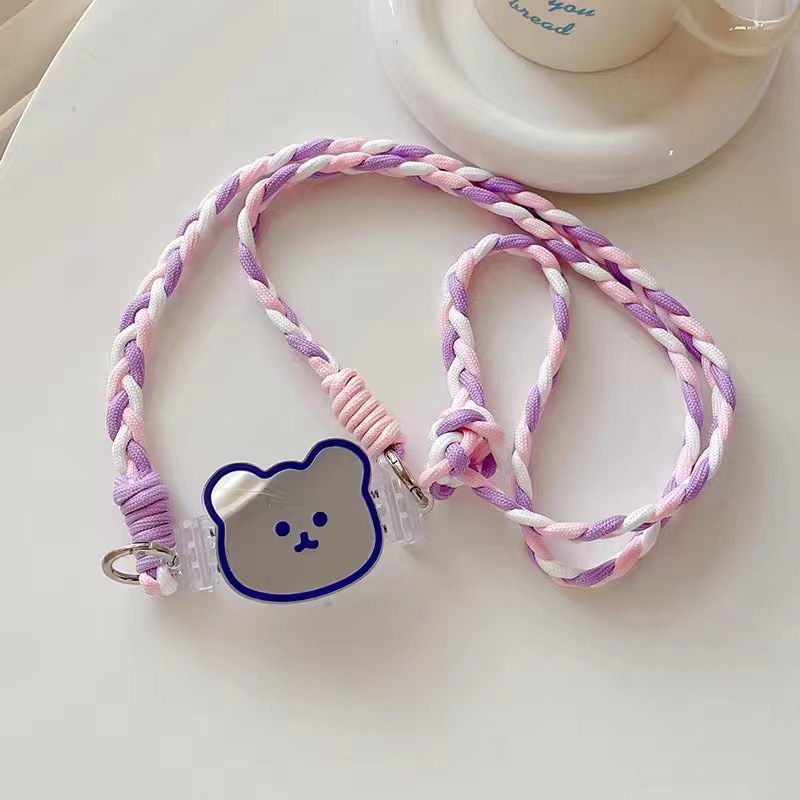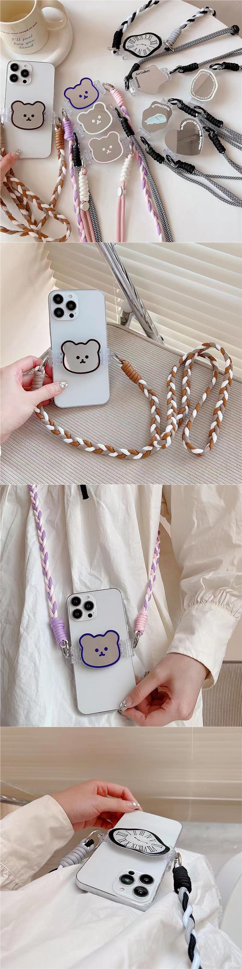 거울 곰 인터넷 연예인 휴대 전화 케이스 백 클립 분리형 긴 로프 크로스 바디 스트랩 끈 만화 여성 유니버설 핸드