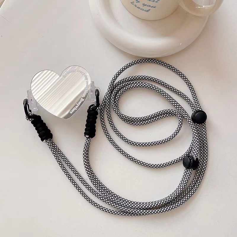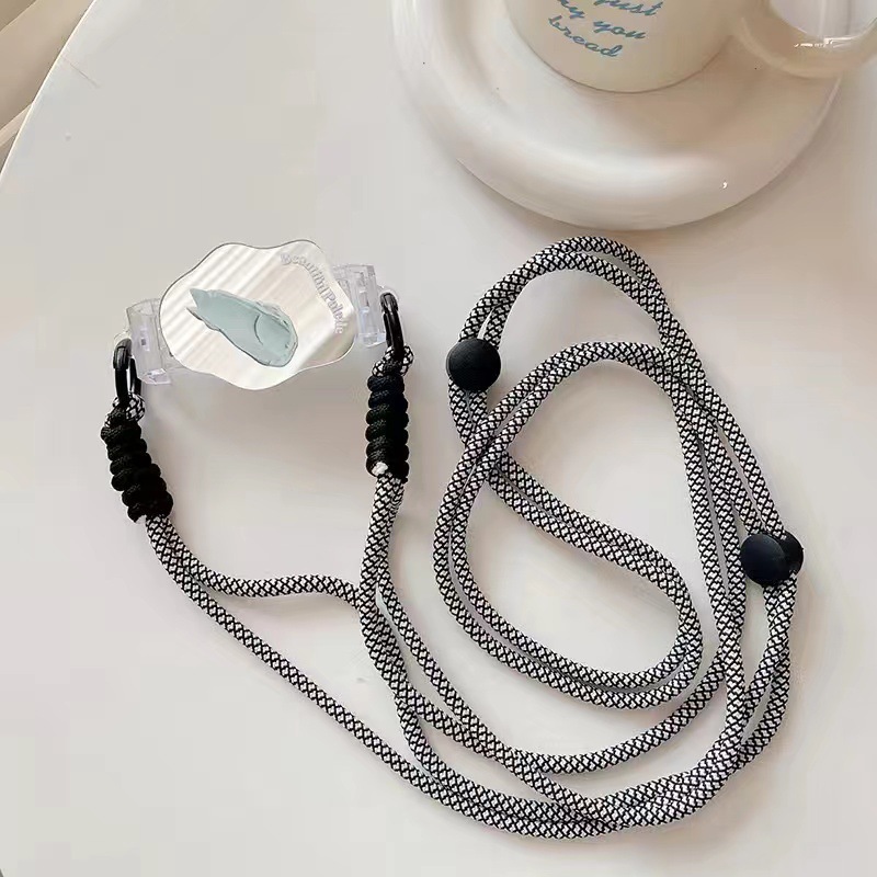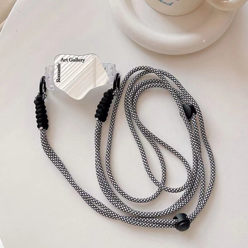 • 곡면 스크린 미러 백 클립 + 흑백 메쉬 크로스바디 로프