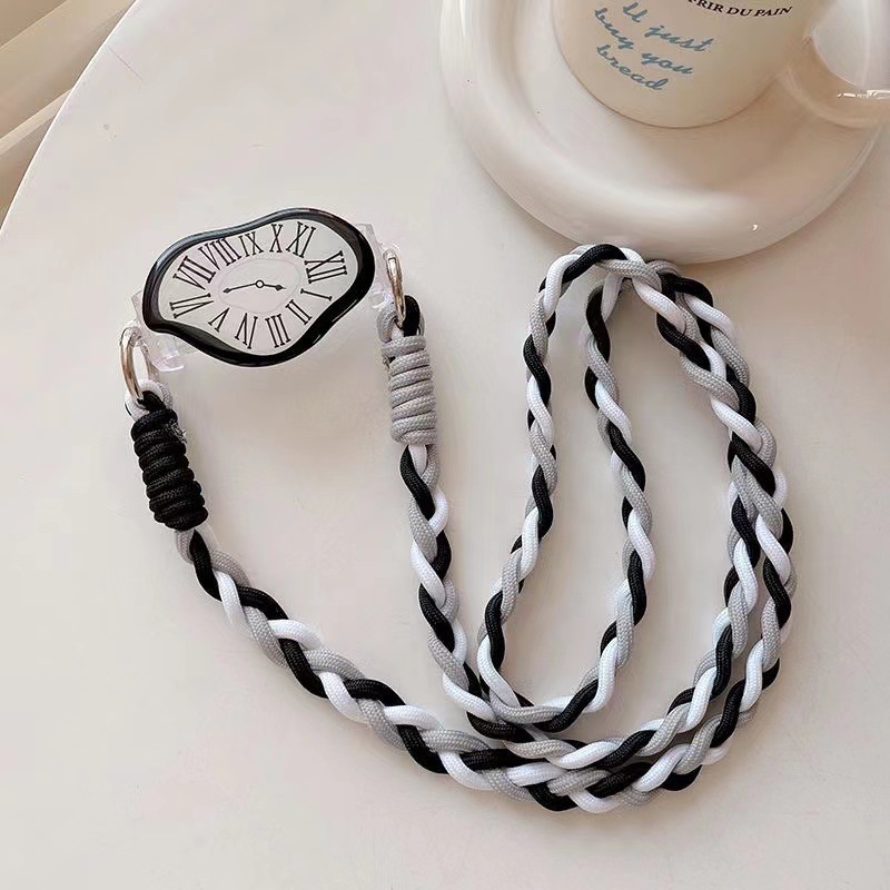 • 블랙 엣지 시계 백 클립 + 흑백 회색 브레이드 로프