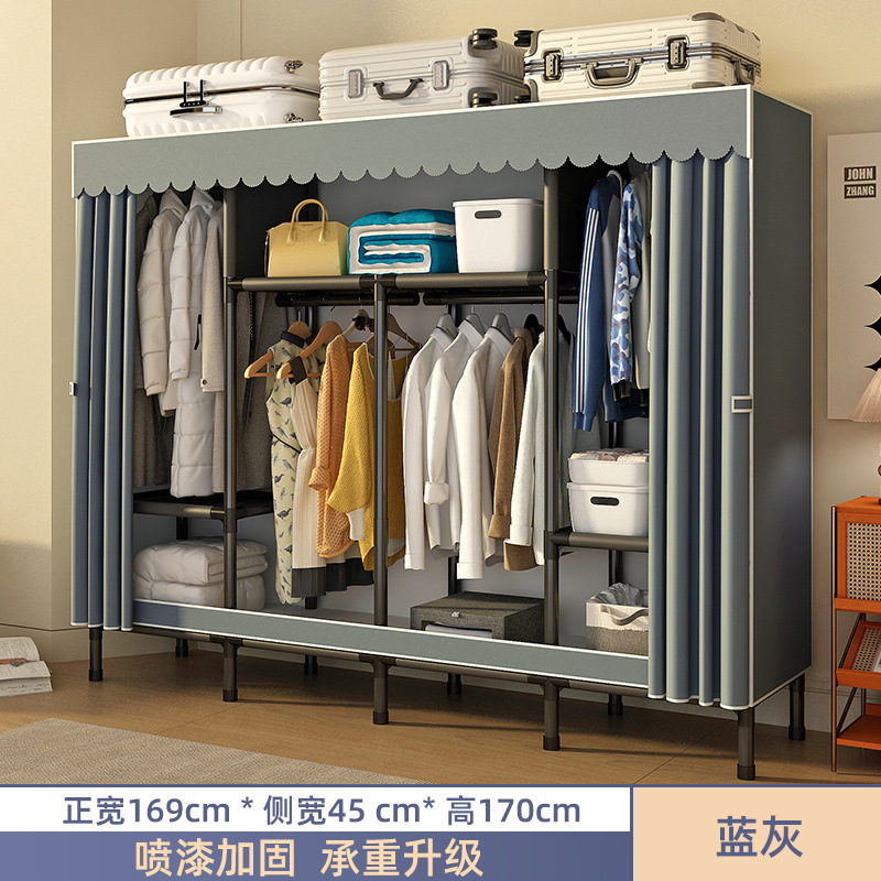 가정용 침실용 간단한 옷장 강철 프레임 두꺼운 조립 임대 주택 천 옷장 강화 내구성 보관 캐비닛