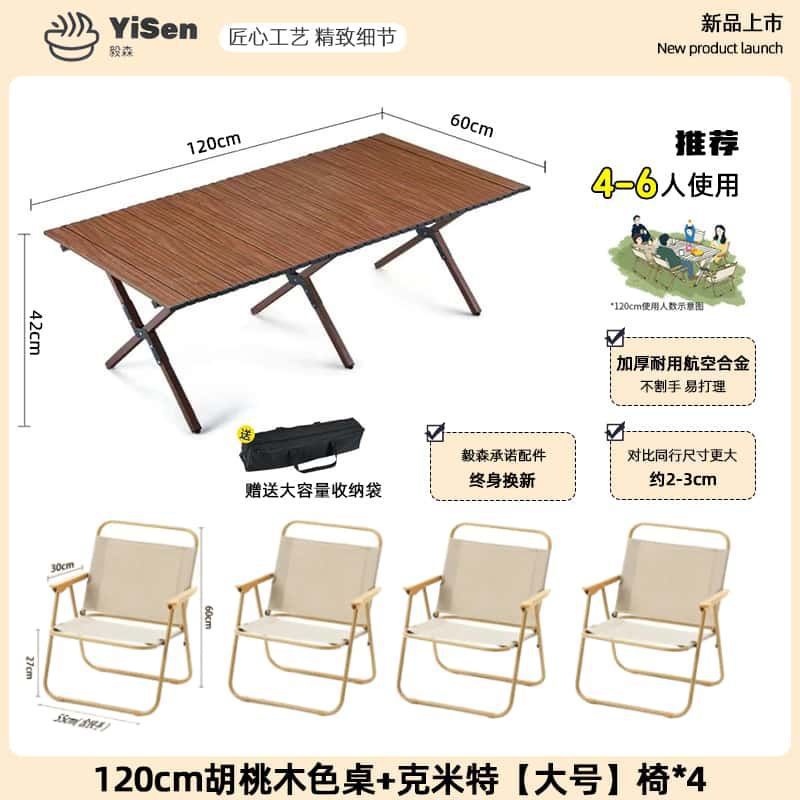 야외 휴대용 접이식 캠핑 테이블과 의자 합금 계란 롤 테이블 피크닉 테이블과 의자 세트 캠핑 용품 장비 테이블