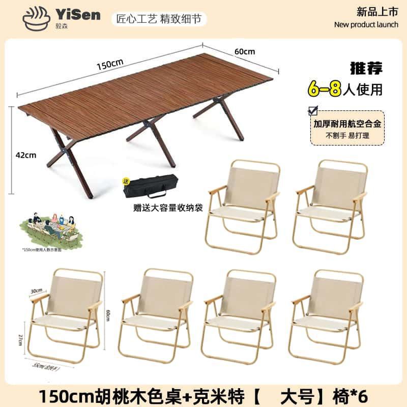 • 테이블 1개, 의자 6개丨150 카키색 테이블 + 특대형 6개 ★