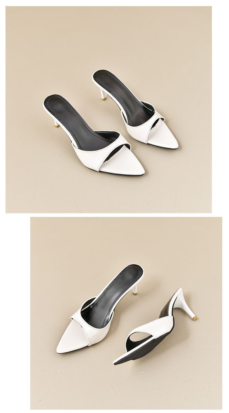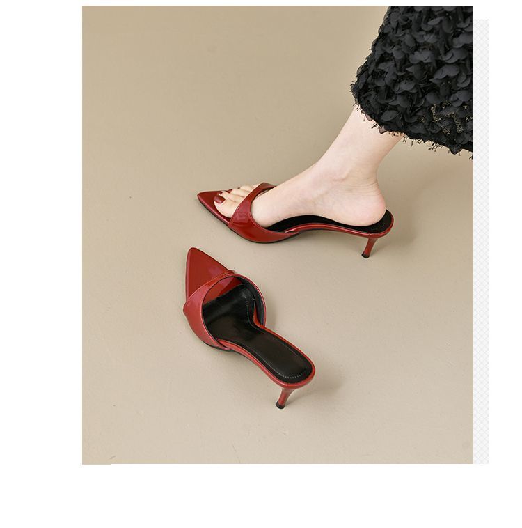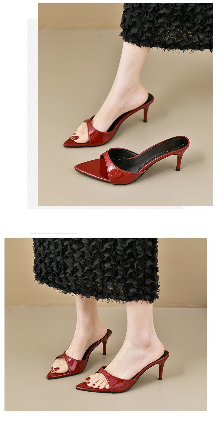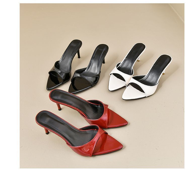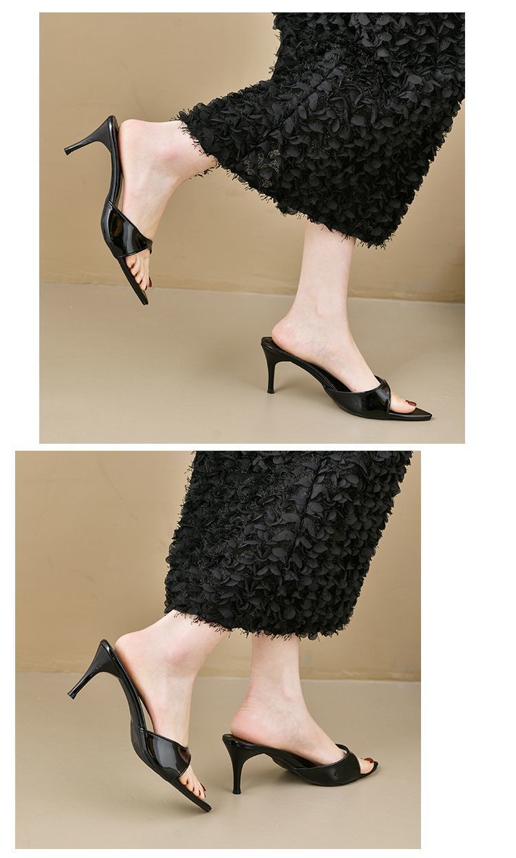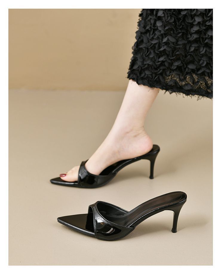 패셔너블하고 다재다능한 도파민 포인티드 토 스틸레토 여성용 슬리퍼 2025 여름 신작 여성용 특허 가죽 하이힐 샌들스토어 가기