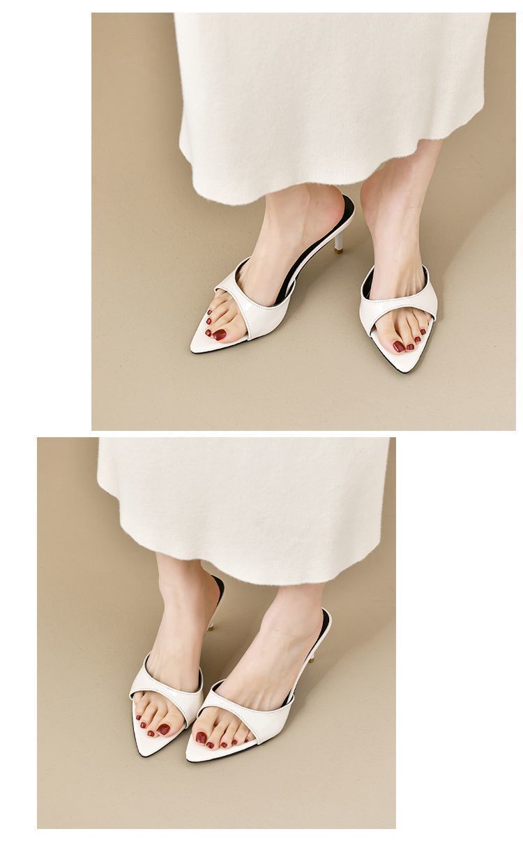 패셔너블하고 다재다능한 도파민 포인티드 토 스틸레토 여성용 슬리퍼 2025 여름 신작 여성용 특허 가죽 하이힐 샌들