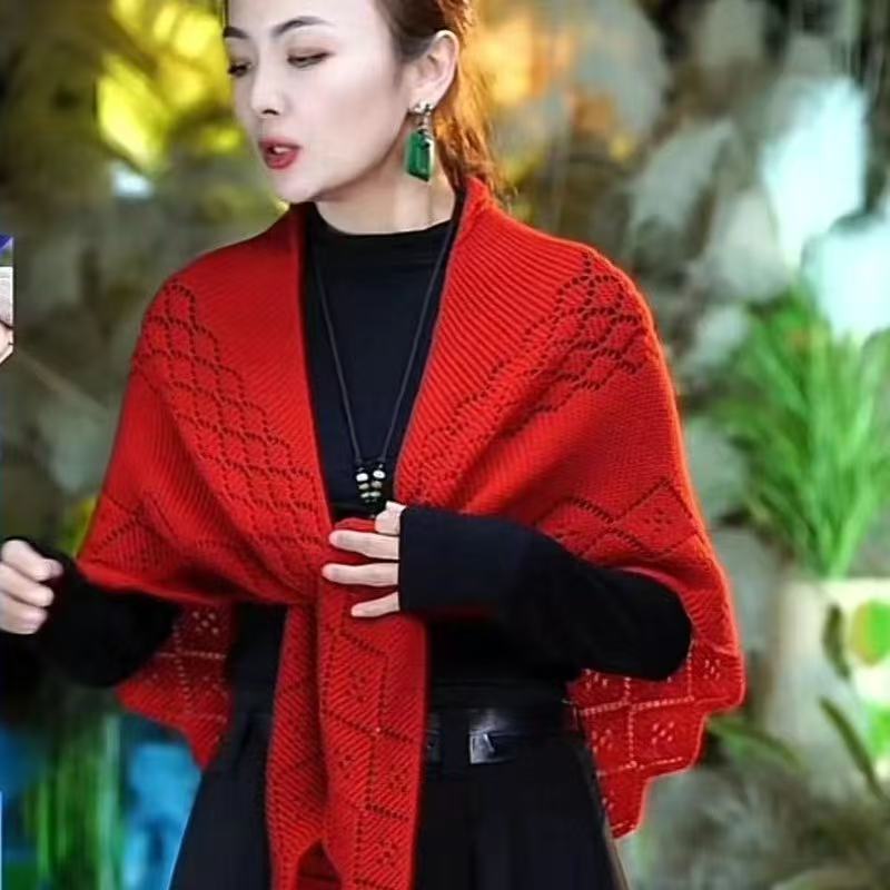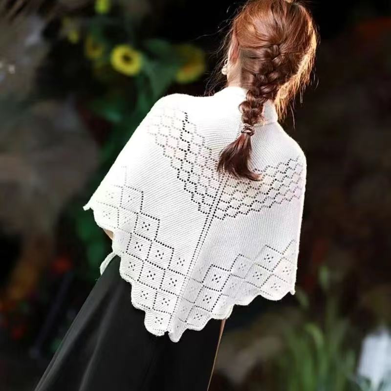 고급 봄 여름 패션 다용도 니트 중공 삼각 스카프 단색 자외선 차단 숄과 니트 스웨터 스카프스토어 가기