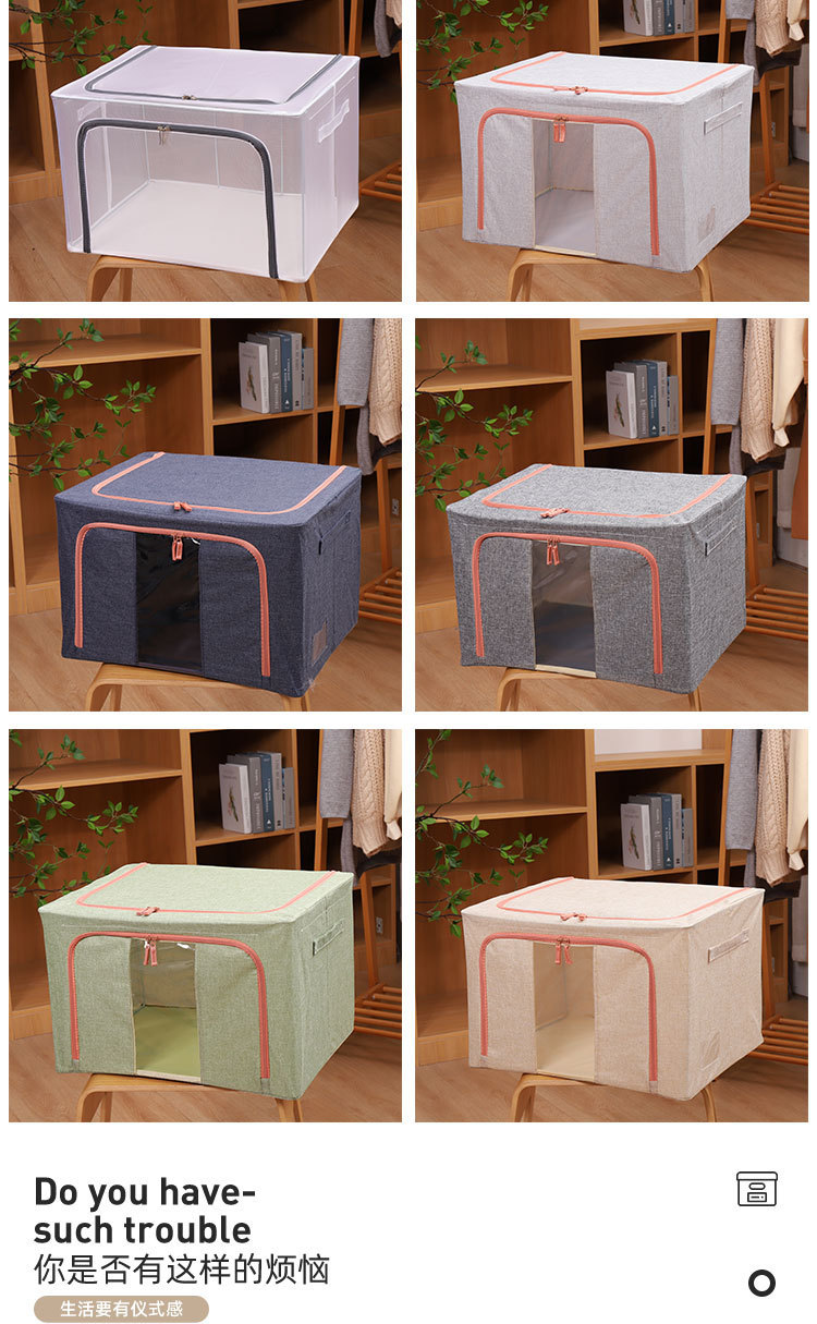 두꺼운 강철 프레임이 있는 면 및 린넨 보관 상자, 의류 보관 및 정리 상자, 냄새가 없는 대형 패브릭 옷장, 접이식 상자스토어 가기