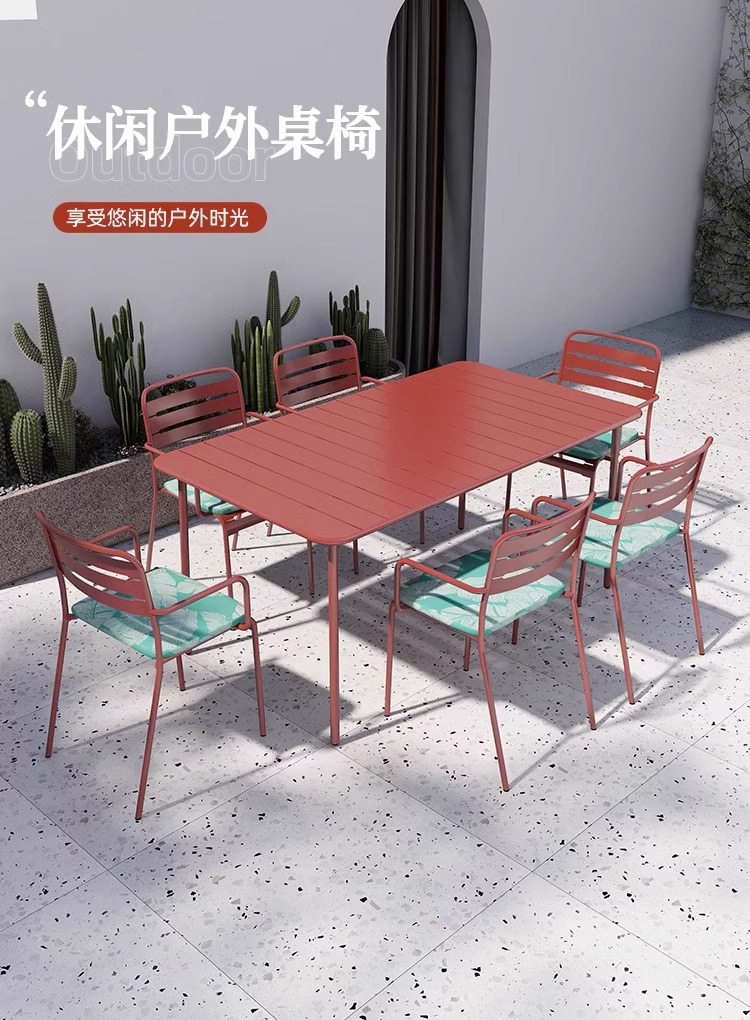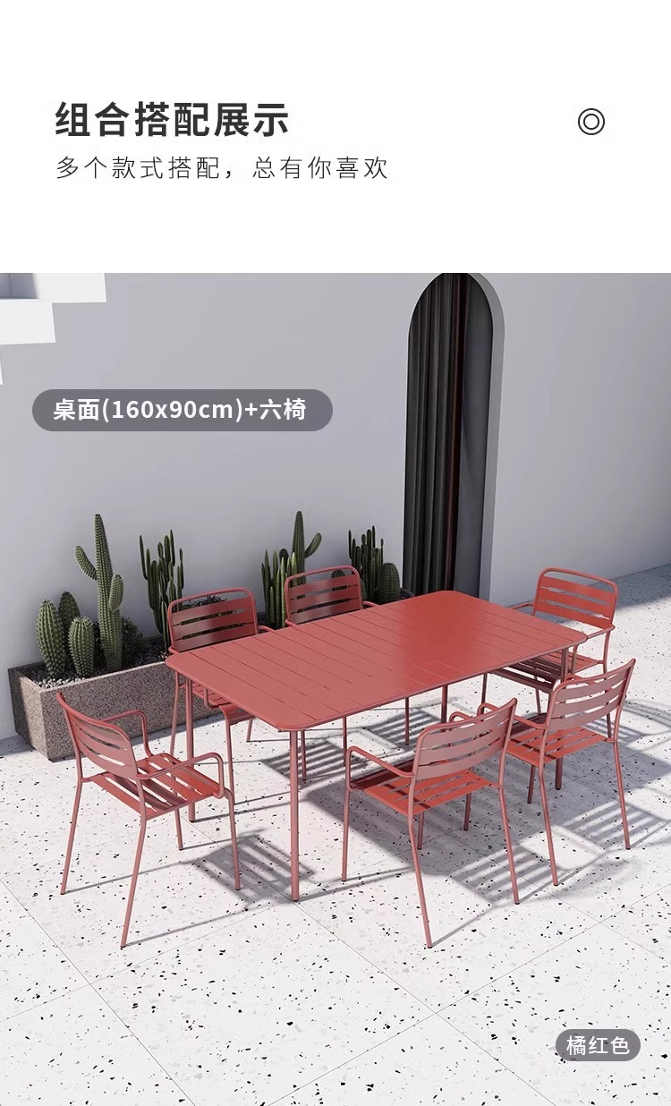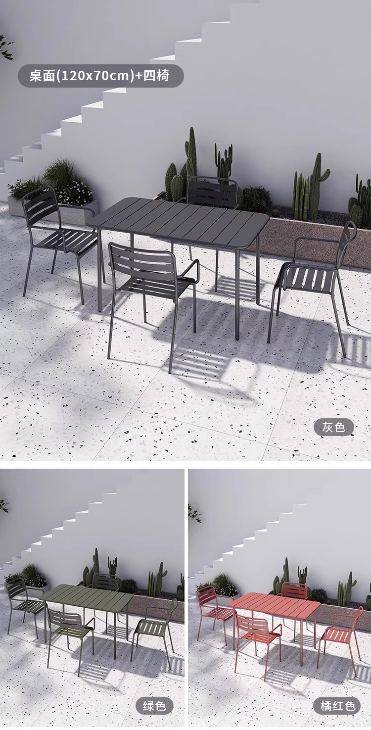 简约户外休闲铁艺桌椅组合奶茶店咖啡店商用外摆一桌四椅露天餐桌