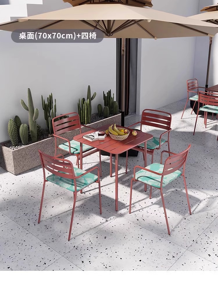 미니멀한 야외 레저 철제 테이블과 의자 조합 밀크티 가게 커피숍 상업용 야외 테이블 1개와 의자 4개 야외 식탁스토어 가기