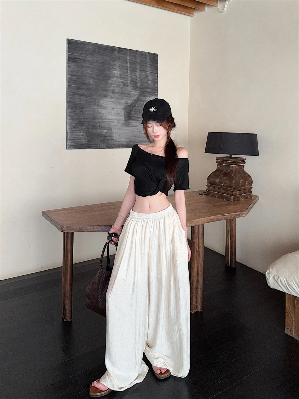 핫걸 화이트 오프숄더 반팔 티셔츠 여성 여름 트위스트 슬림 디자인 틈새 슬리밍 크롭 탑스토어 가기