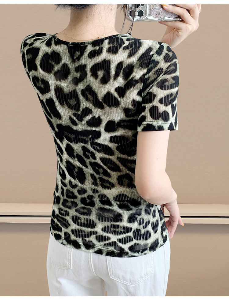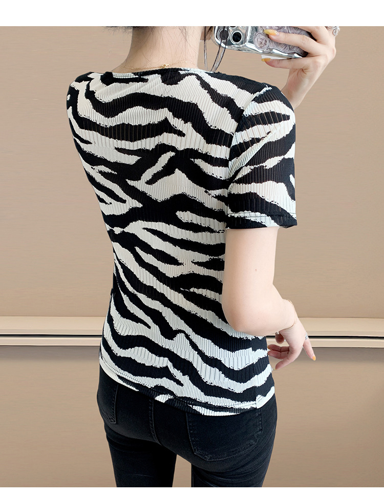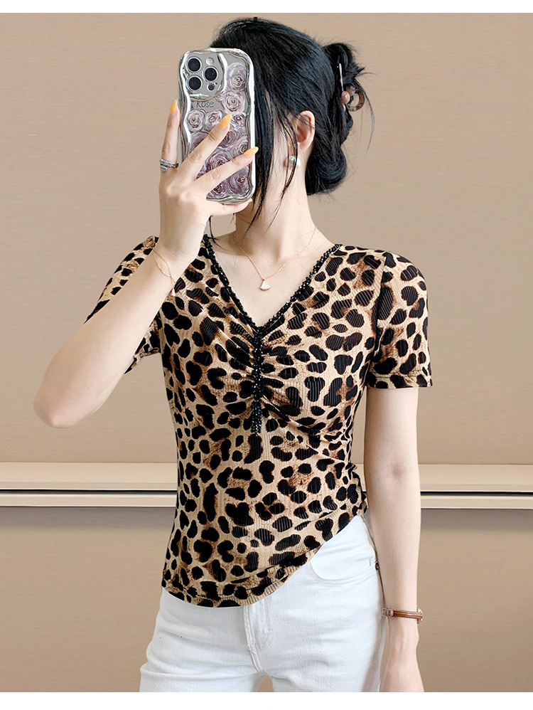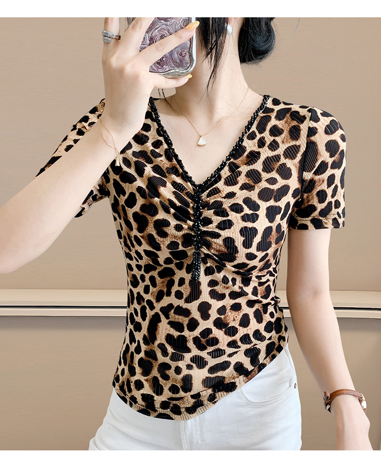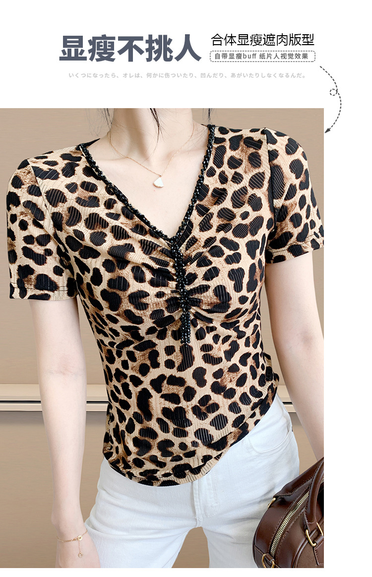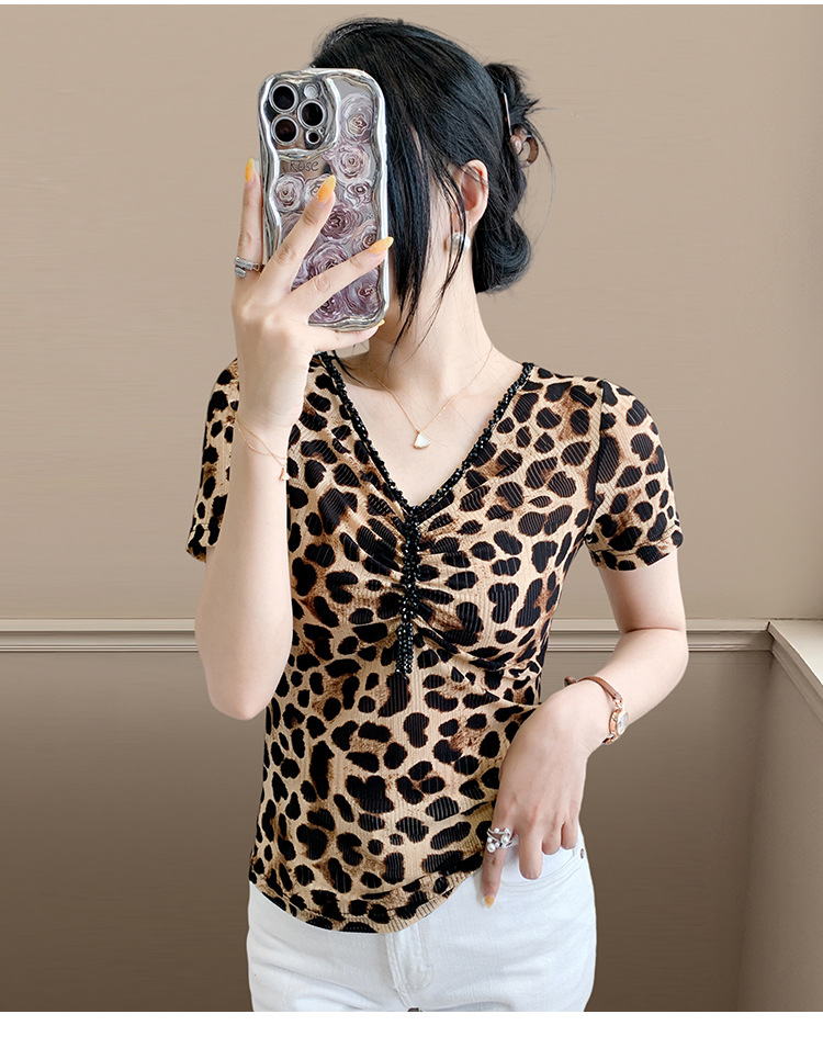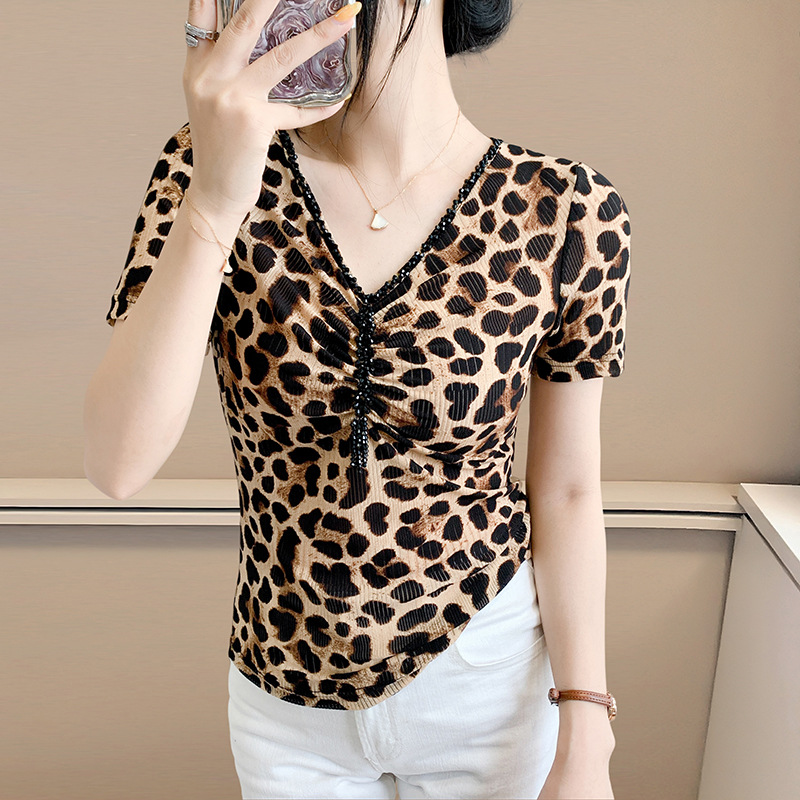 유럽 역 2025 새로운 반팔 티셔츠 여성 프린트 메쉬 v 넥 탑 하이 엔드 패션 여름 구슬 반팔스토어 가기