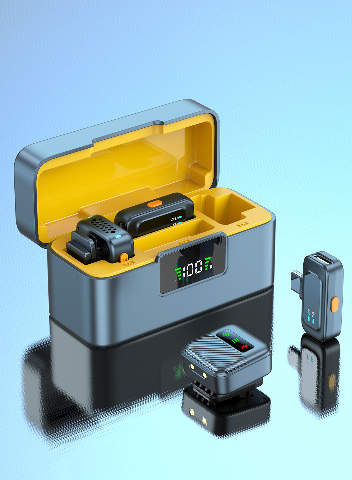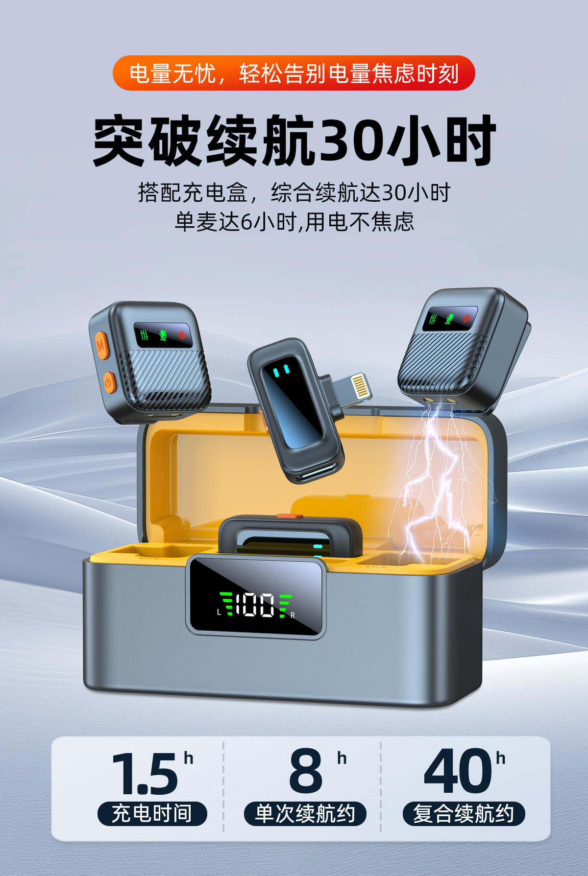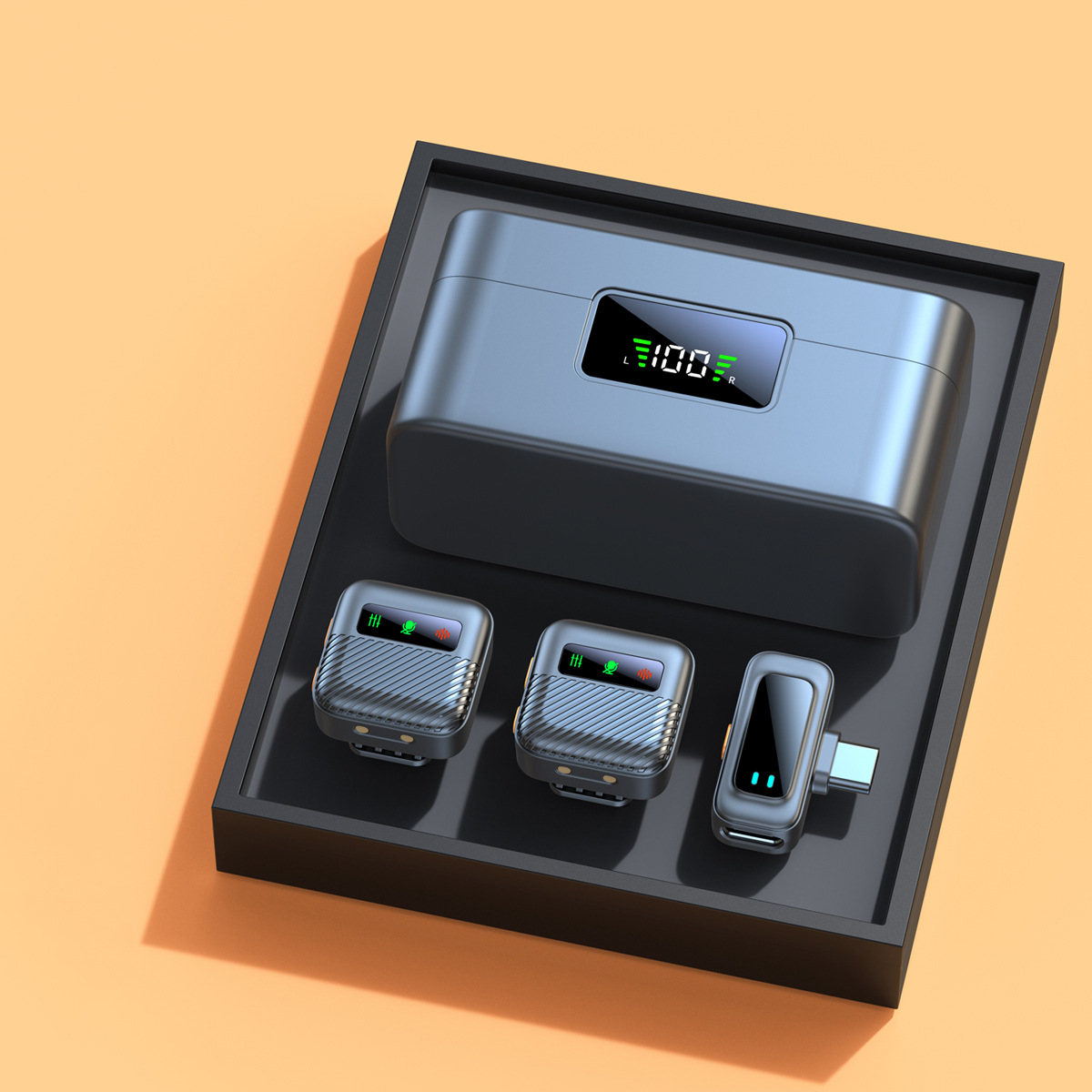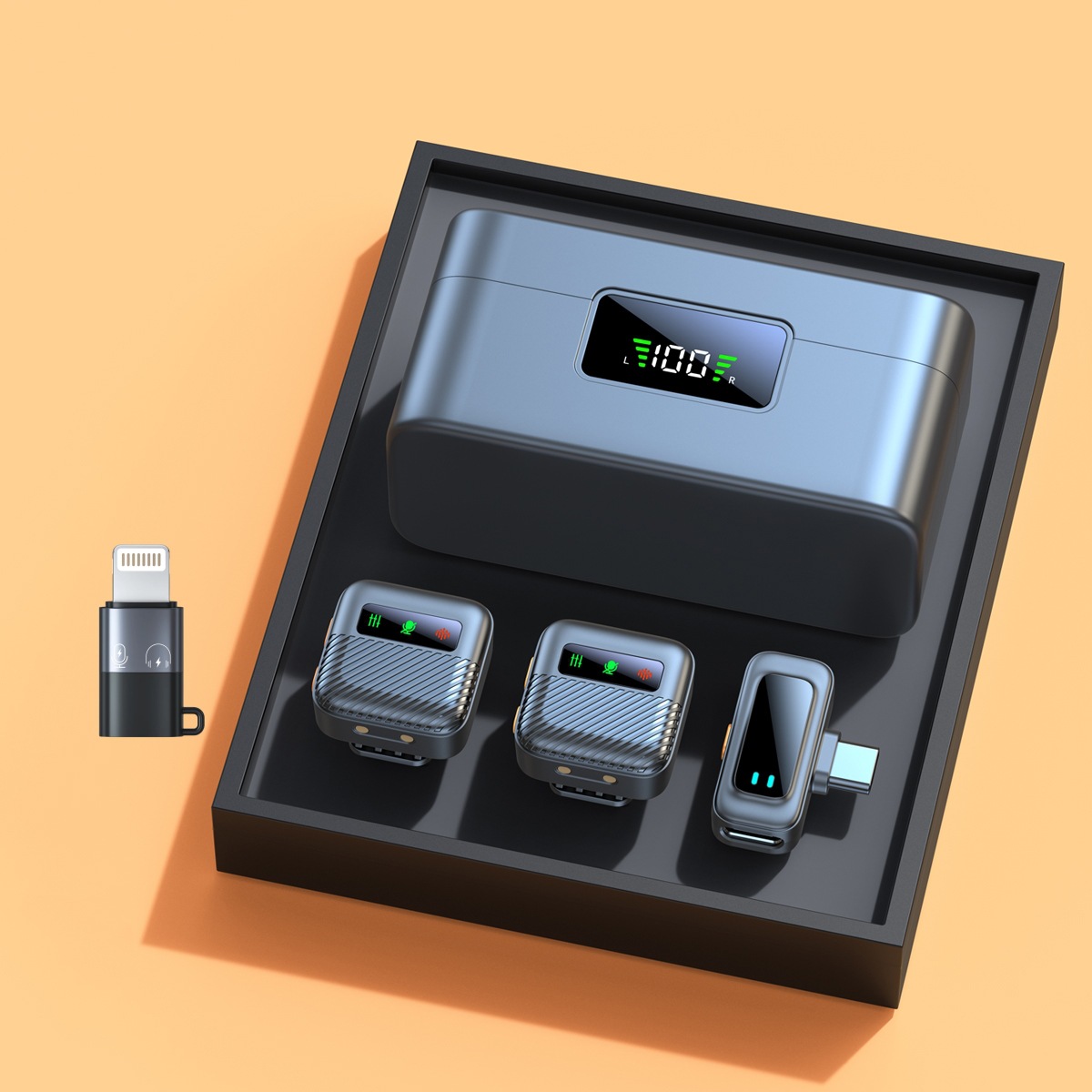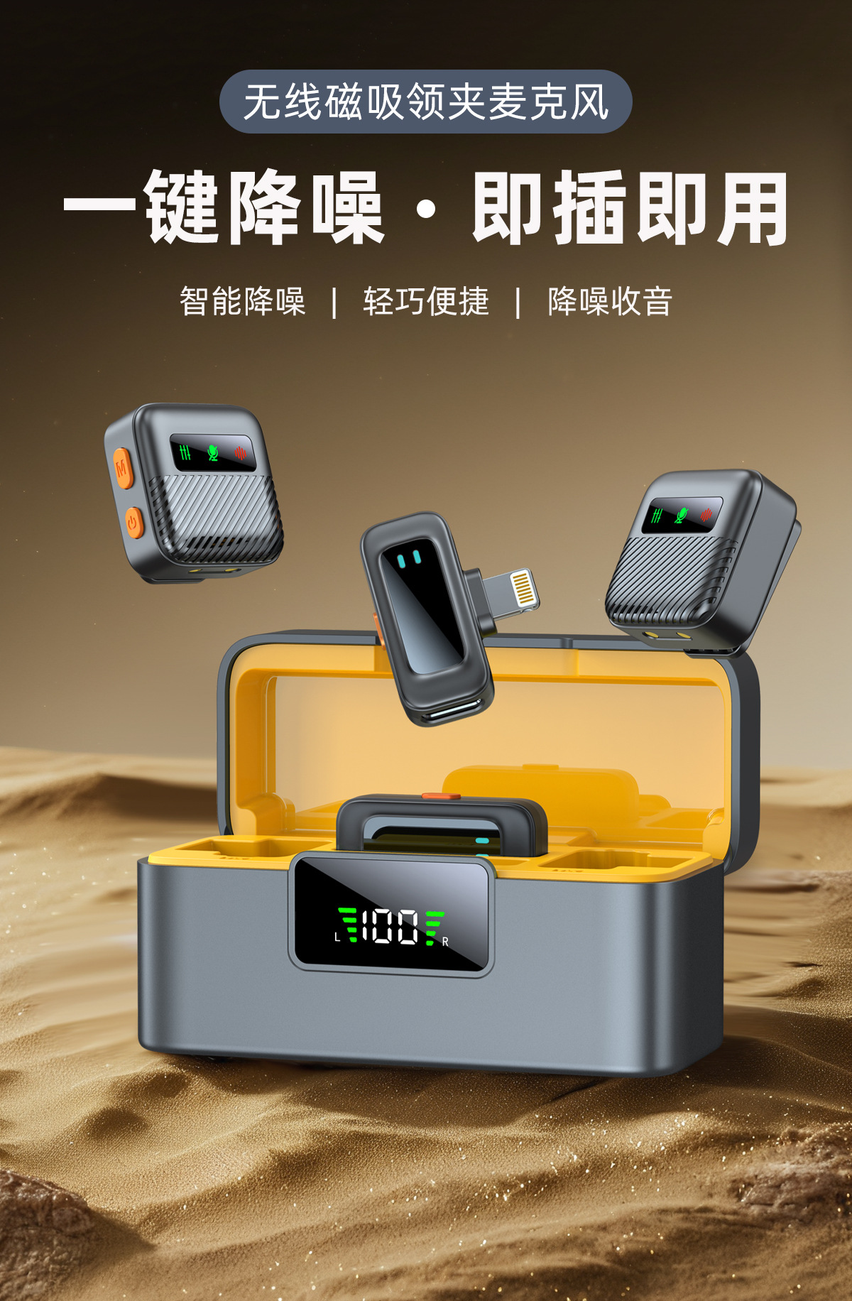 충전 챔버가 있는 새로운 B18 무선 라발리에 마이크 2대 1 Douyin 라이브 스트리밍 지능형 소음 감소 미니 마이크