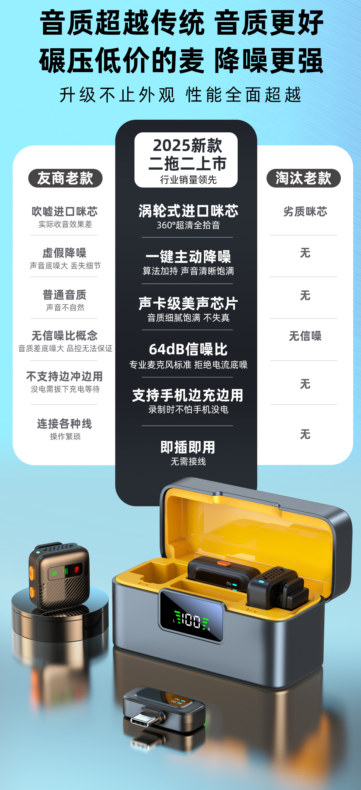 충전 챔버가 있는 새로운 B18 무선 라발리에 마이크 2대 1 Douyin 라이브 스트리밍 지능형 소음 감소 미니 마이크스토어 가기