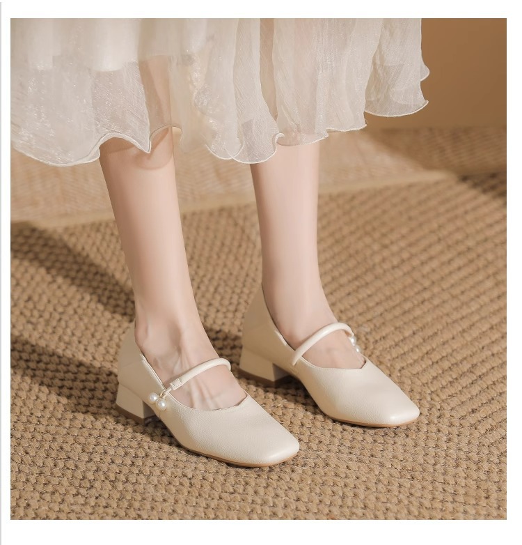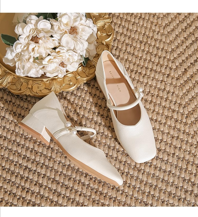 매우 부드러운! 정품 가죽 프렌치 플랫 치파오 슈즈 화이트 메리 제인 슈즈 가죽 슈즈 워크 슈즈 이브닝 슈즈 여성 슈즈스토어 가기