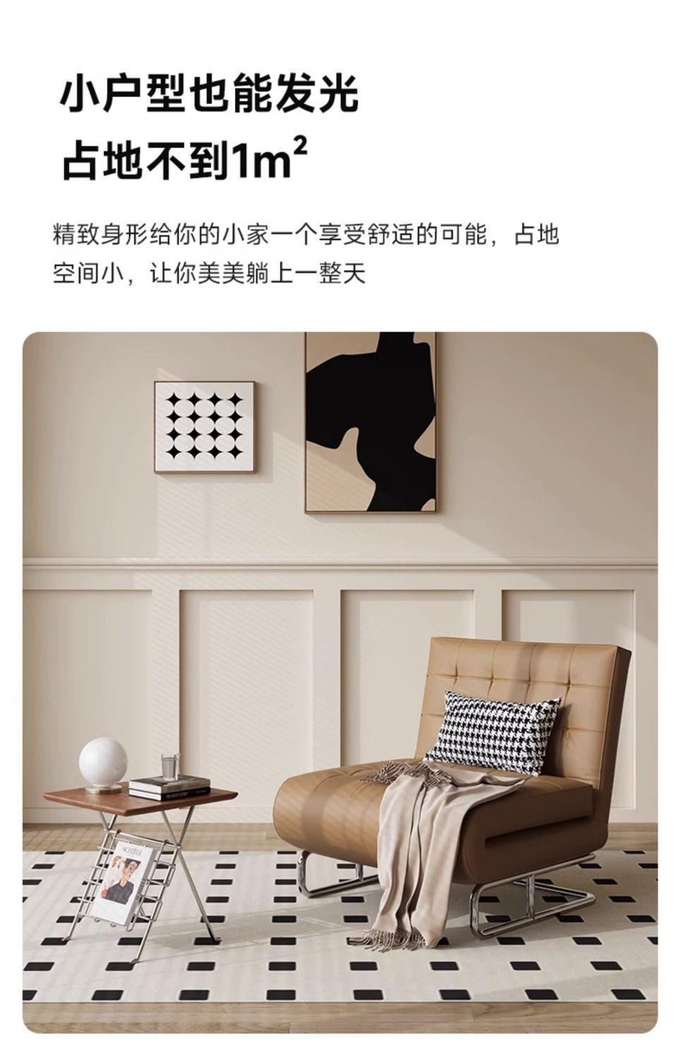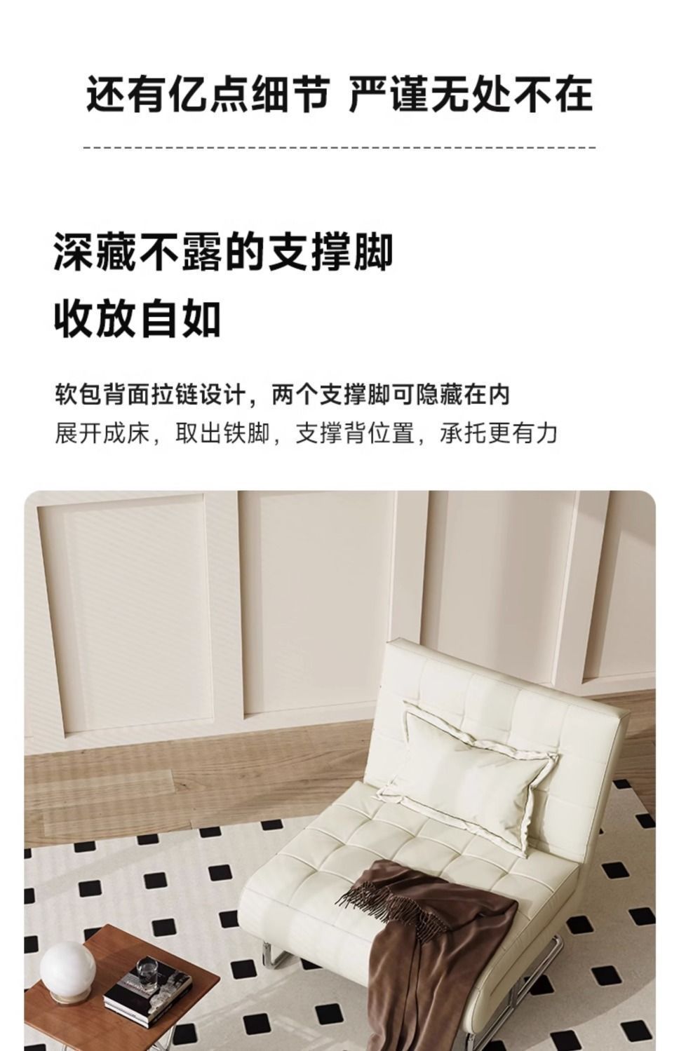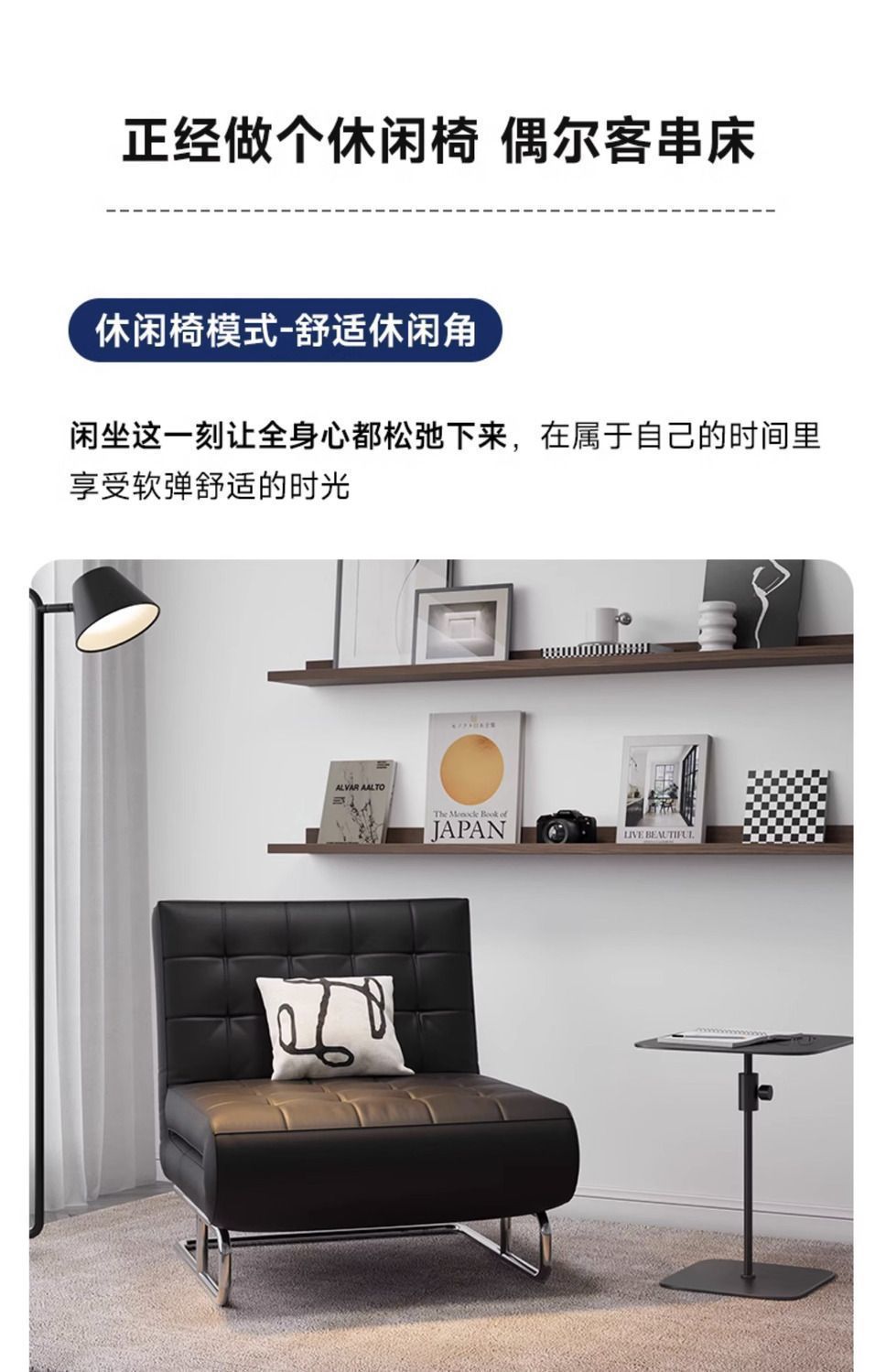 1인용 접이식 레저 의자, 좌식 겸용 소파 베드, 블랙 소파 의자, 발코니 안락 의자, 복고풍 크림 스타일 홈스토어 가기